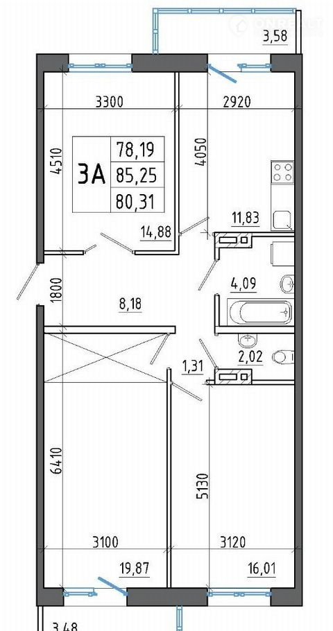 Общая площадь 85.3 м2