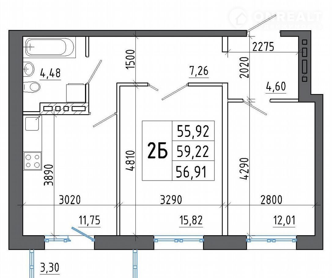 Общая площадь 59.2 м2