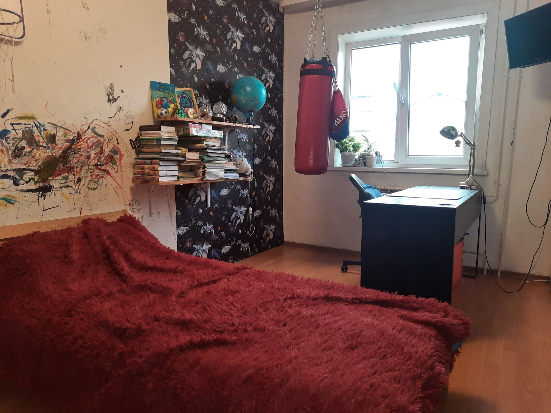 Просторная светлая квартира . 4 комнаты , 2 балкона на разные стороны , санузел раздельный . Школа и детские садики в 2 минутах . В квартире выравнены стены и пол , санузел подготовлен к ремонту . Квартира готова к любому вашему дизайнирскому решению