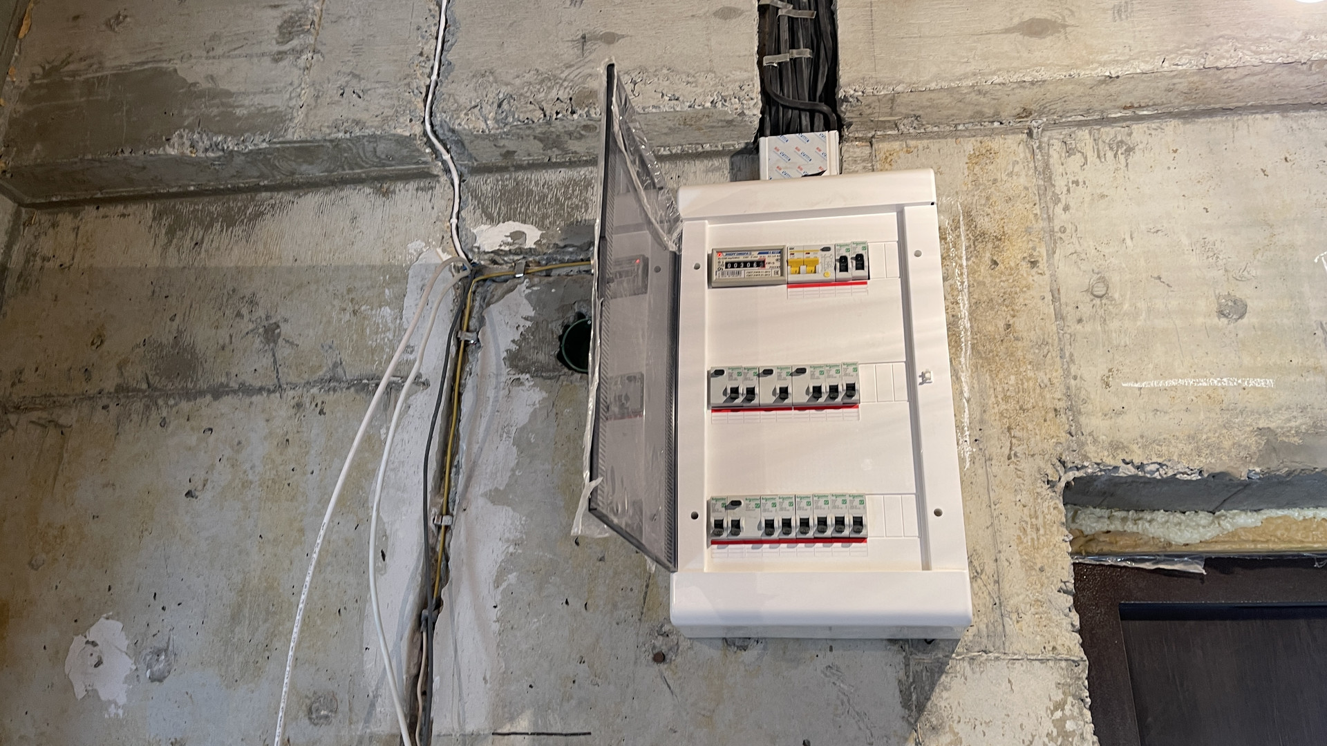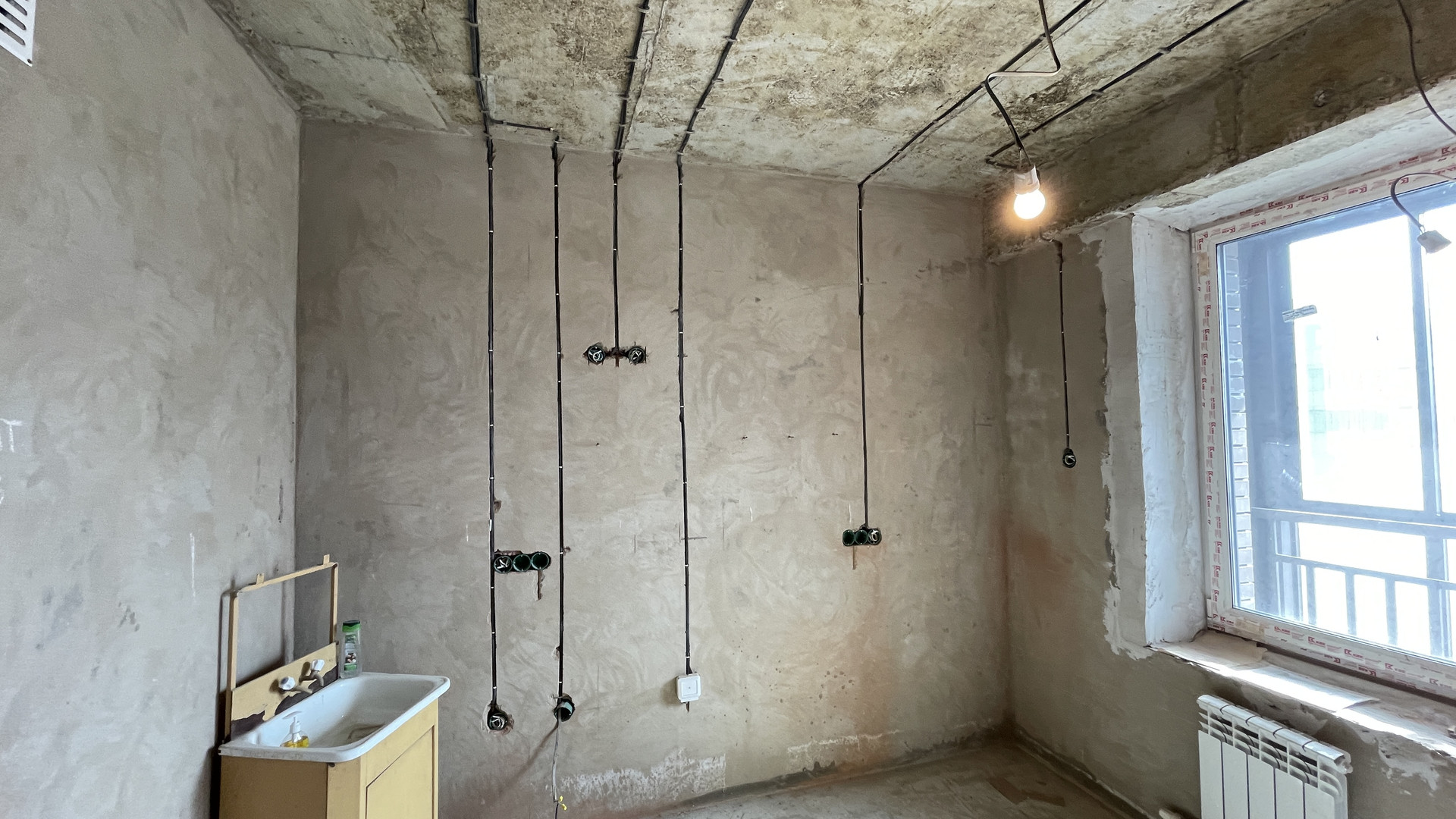 Залит теплый пол. Выполнена с соблюдением всех стандартов разводка электрики.