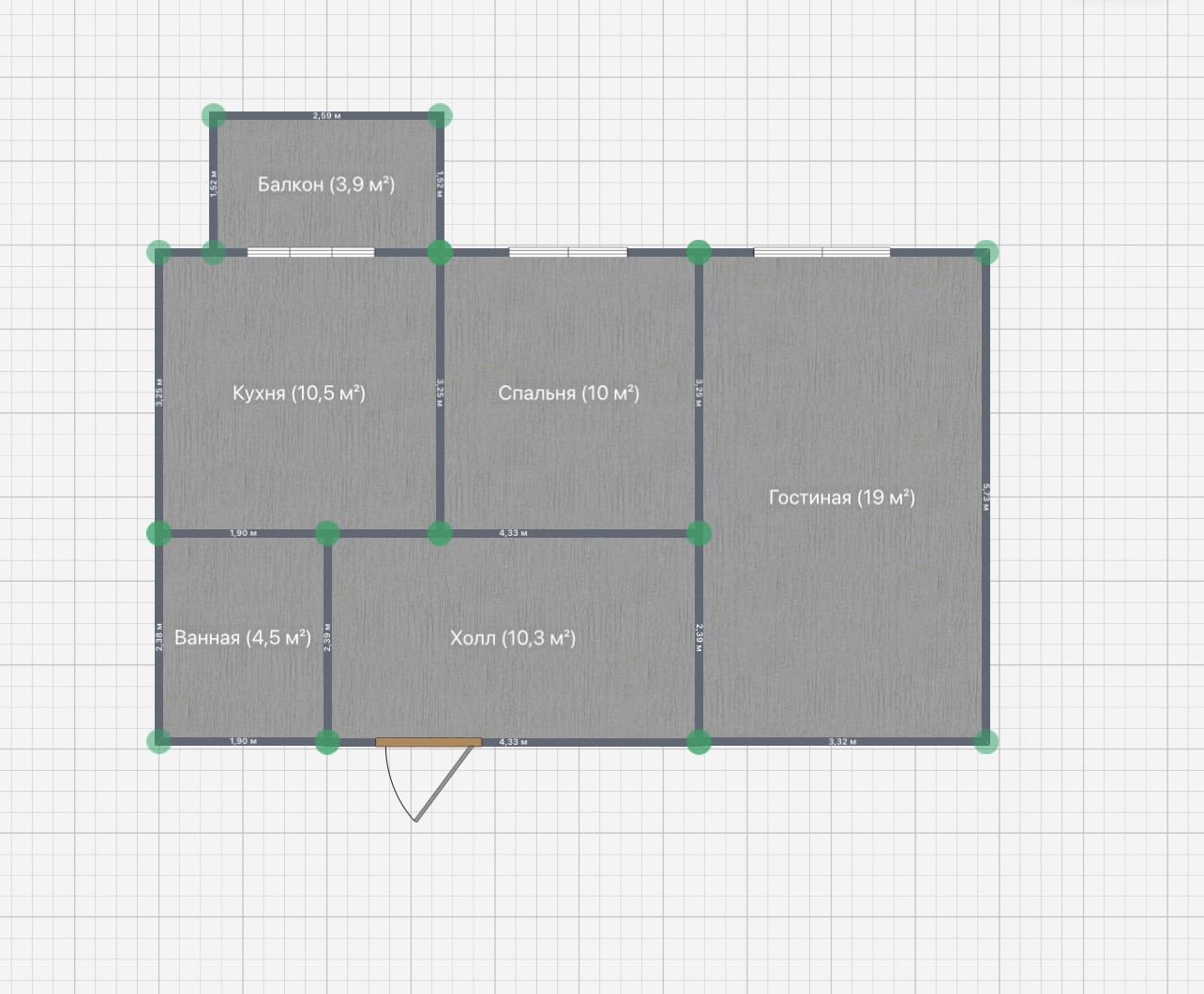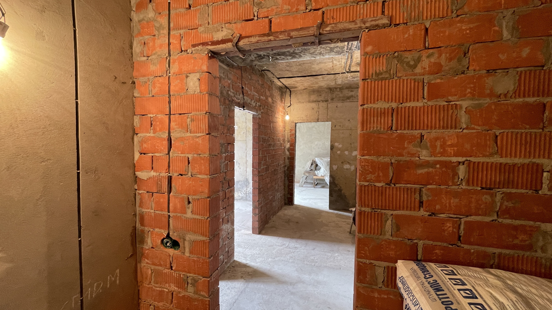 Уже установлены межкомнатные перегородки из кирпича. Планировка - идеальная для дружной семьи: кухня 10 м2, спальня 10 м2, гостиная 16 м2. Санузел совмещенный.