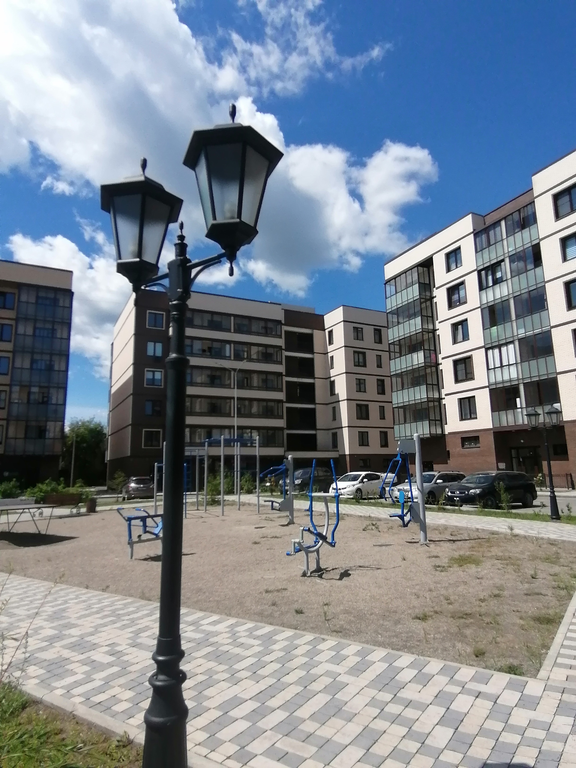 Во дворе всегда чистота и порядок. Спортивные и детские площадки, места для отдыха, огромная песочница для малышей. А также множество зеленых насаждений. Летом очень красочно во дворе.
