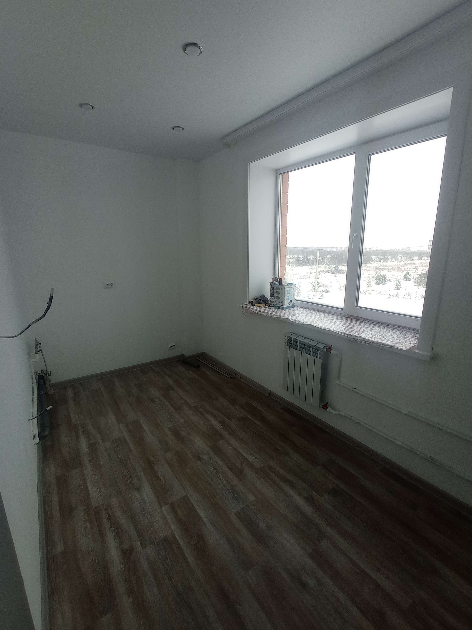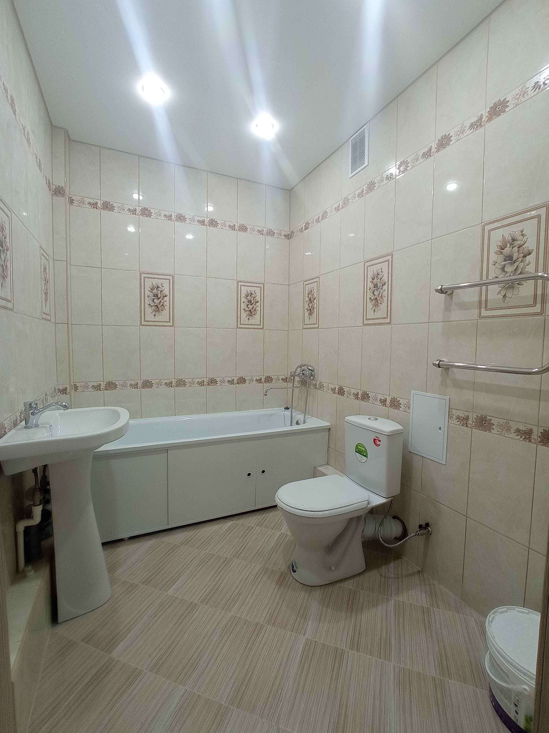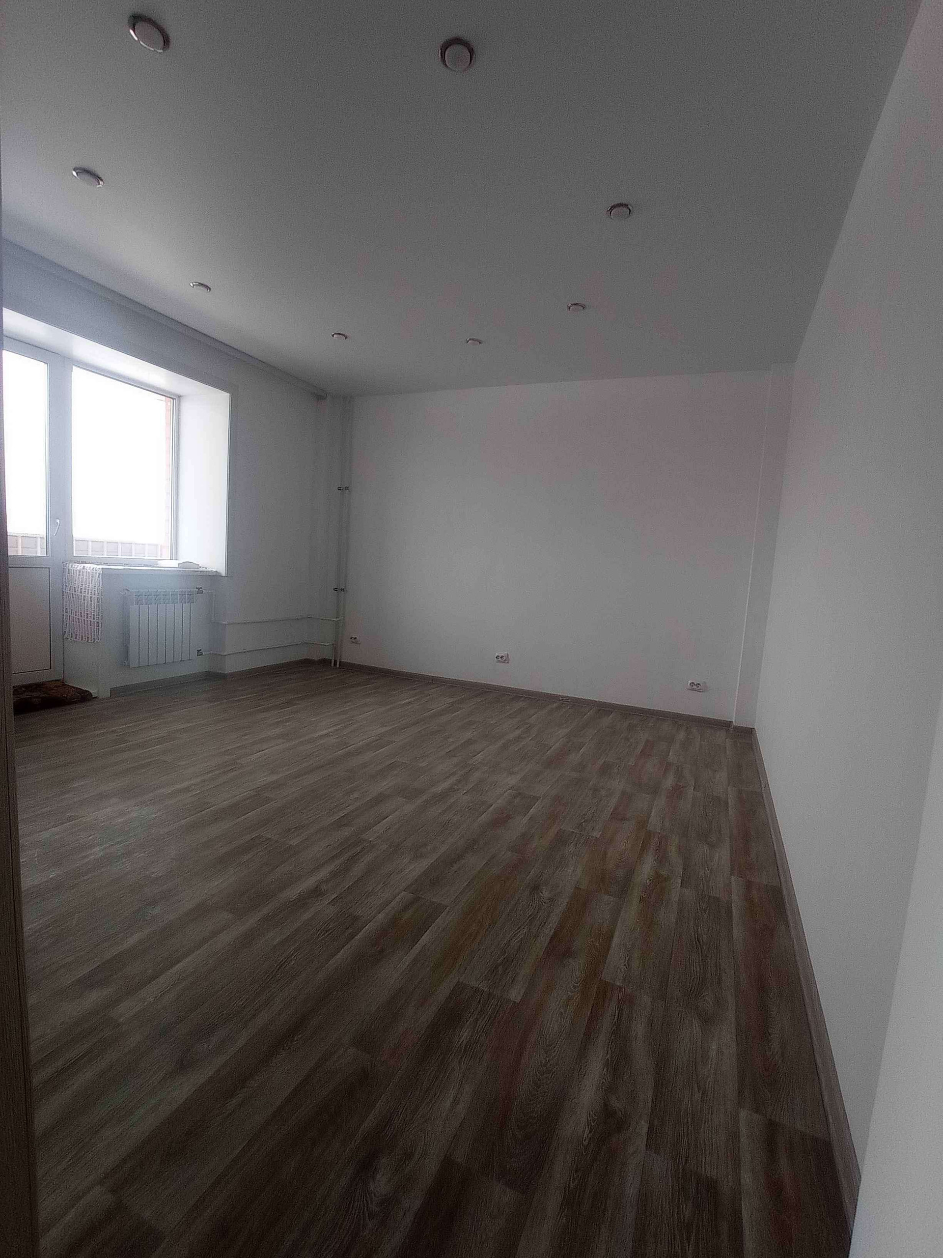 Квартира полностью готова ко встрече новых счастливых хозяев: натяжные потолки с точечными светильниками, линолеум на полу, в санузле кафельная плитка, в кухне и комнатах стены выровнены и окрашены в нежный молочный цвет.