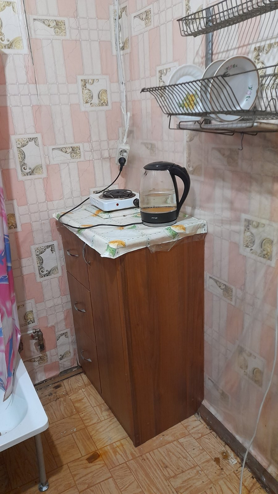 Комната, кухня, санузел.