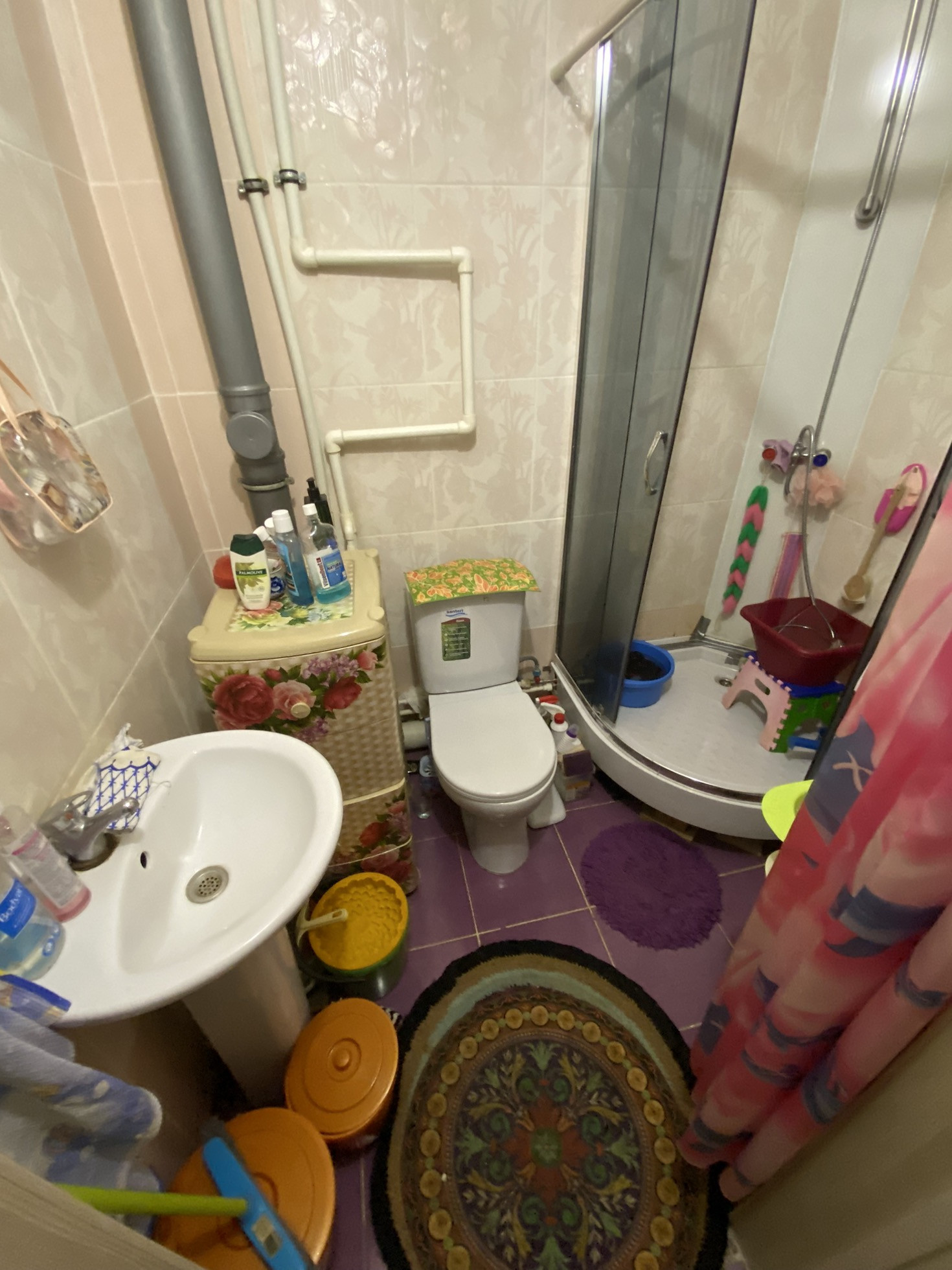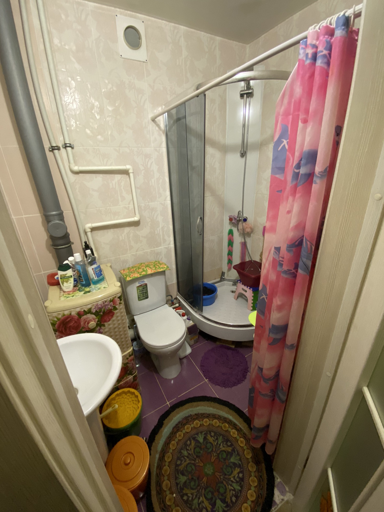 Сан/узел совм-кафель, душевая кабина.