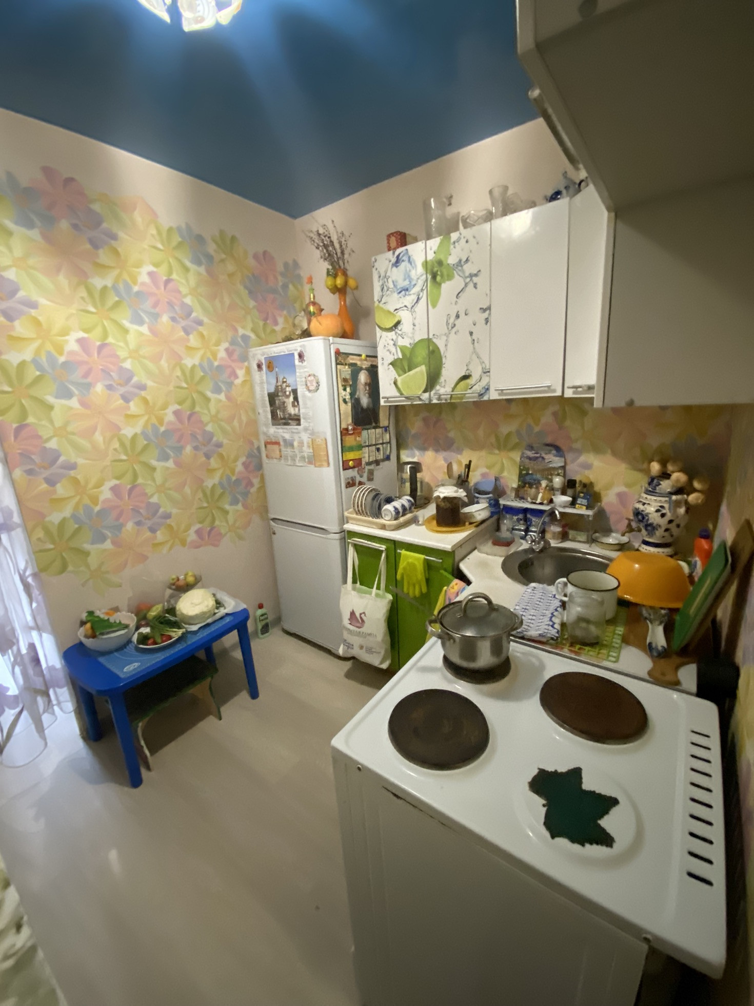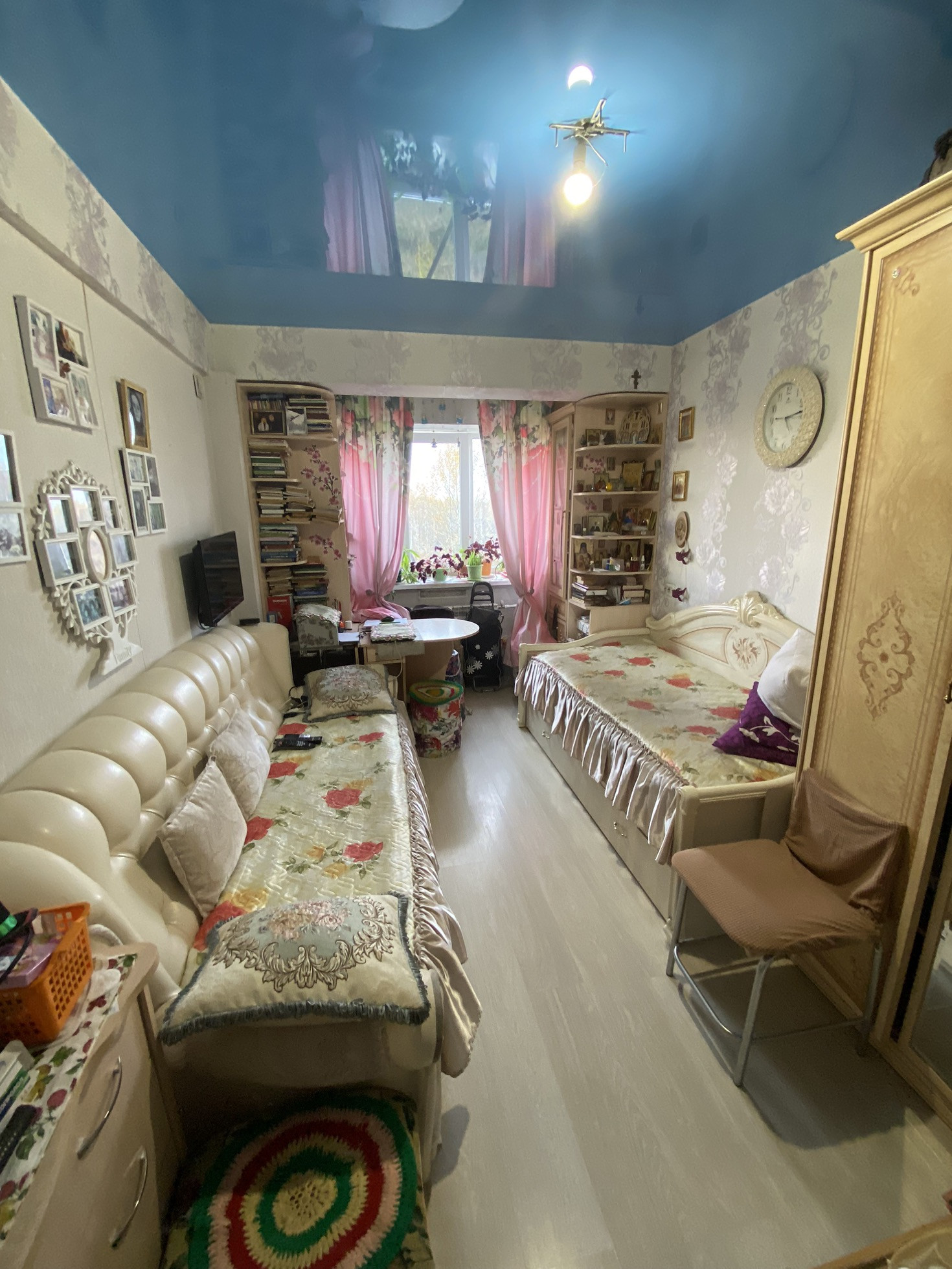 Натяжные потолки, ламинат.
