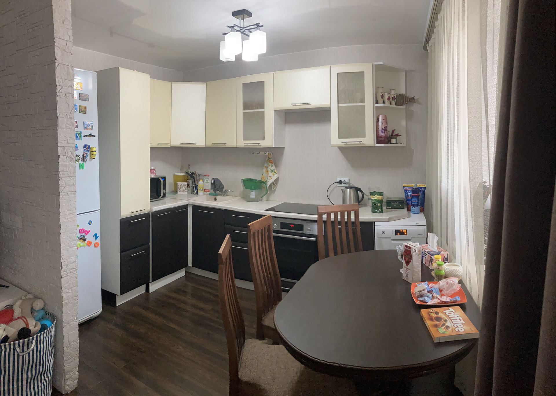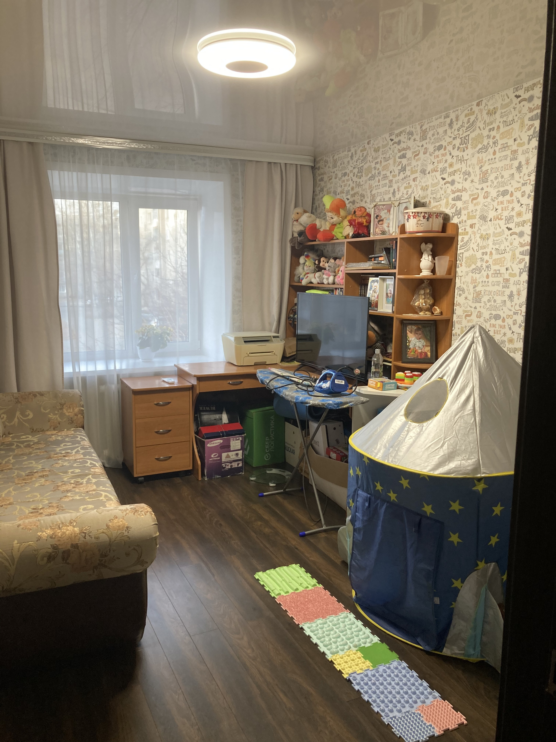 Квартира светлая,тёплая,не угловая.Пластиковые окна,вентиляция,на полу ламинат.Большая лоджия, застекленная.Санузел совмещен,установлена душевая кабина и водонагреватель,тёплый пол. Есть место для гардеробной.