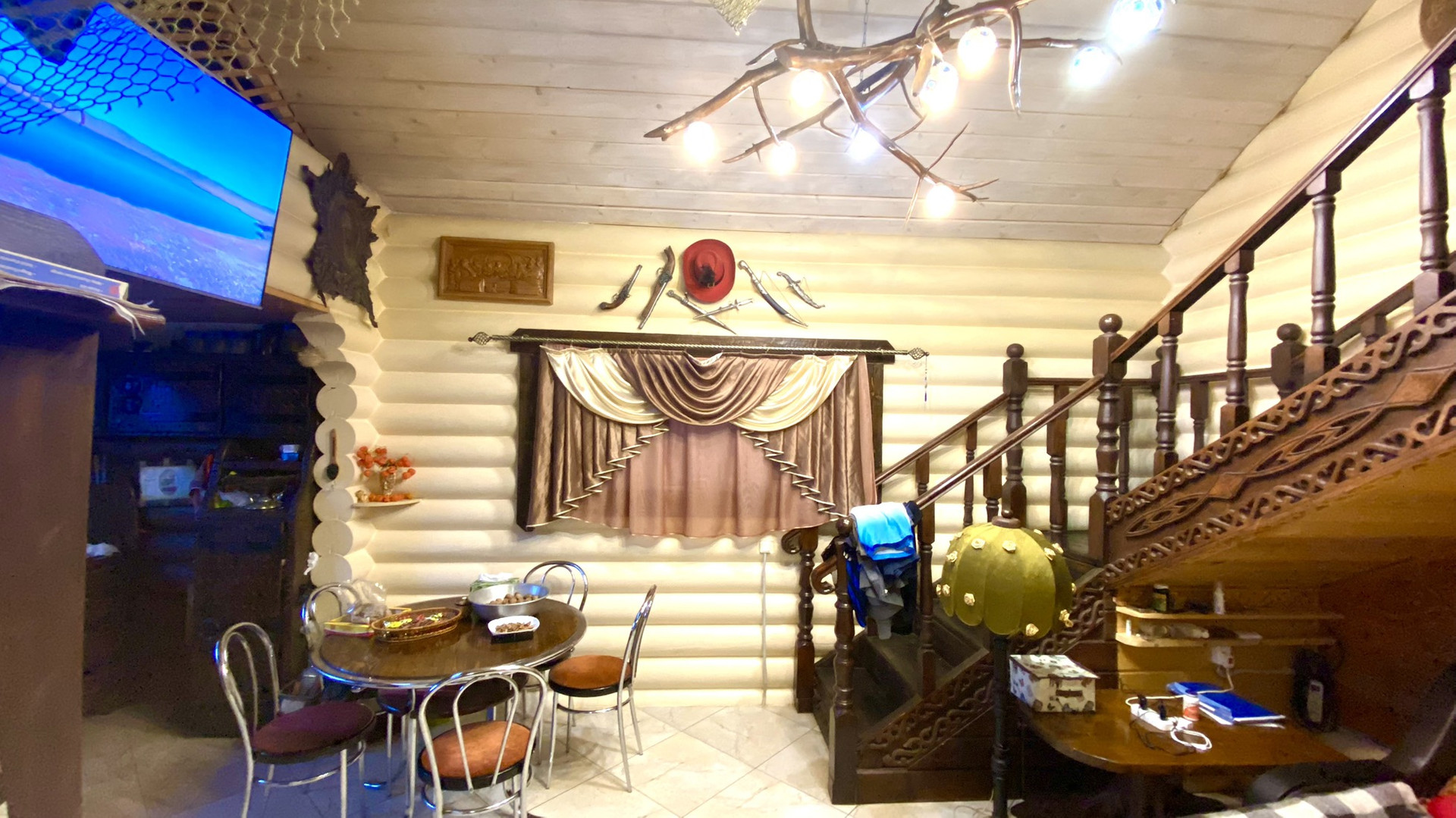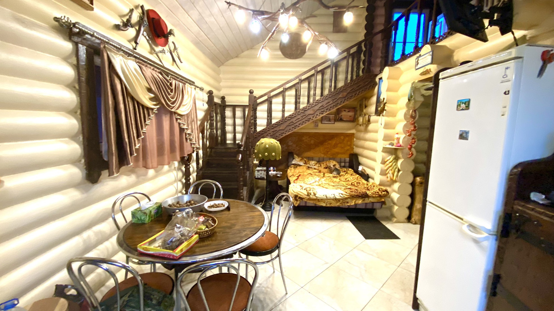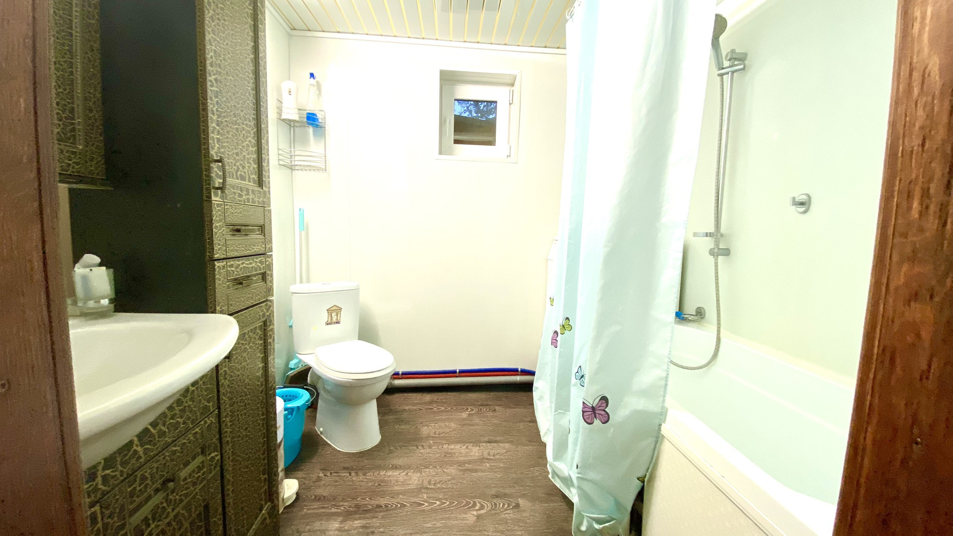 - Гостевой дом двухэтажный. Санузел совмещенный на первом этаже, кухня-гостиная, лестница на 2 этаж. на втором этаже большая спальня