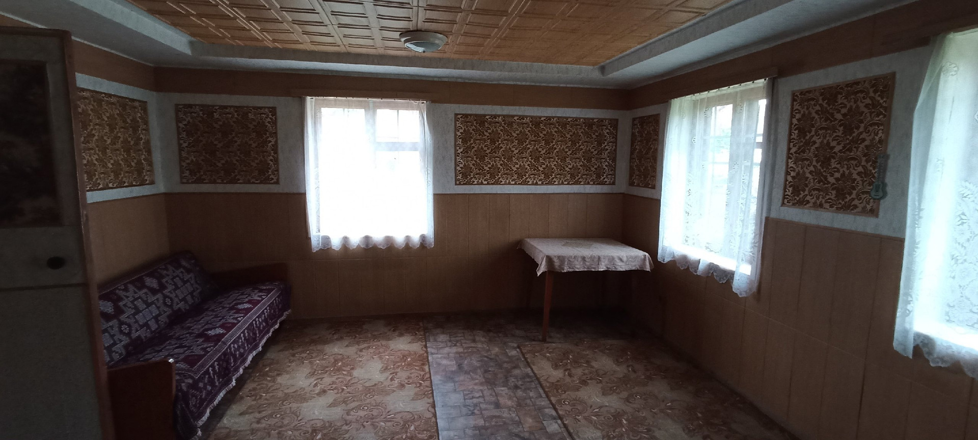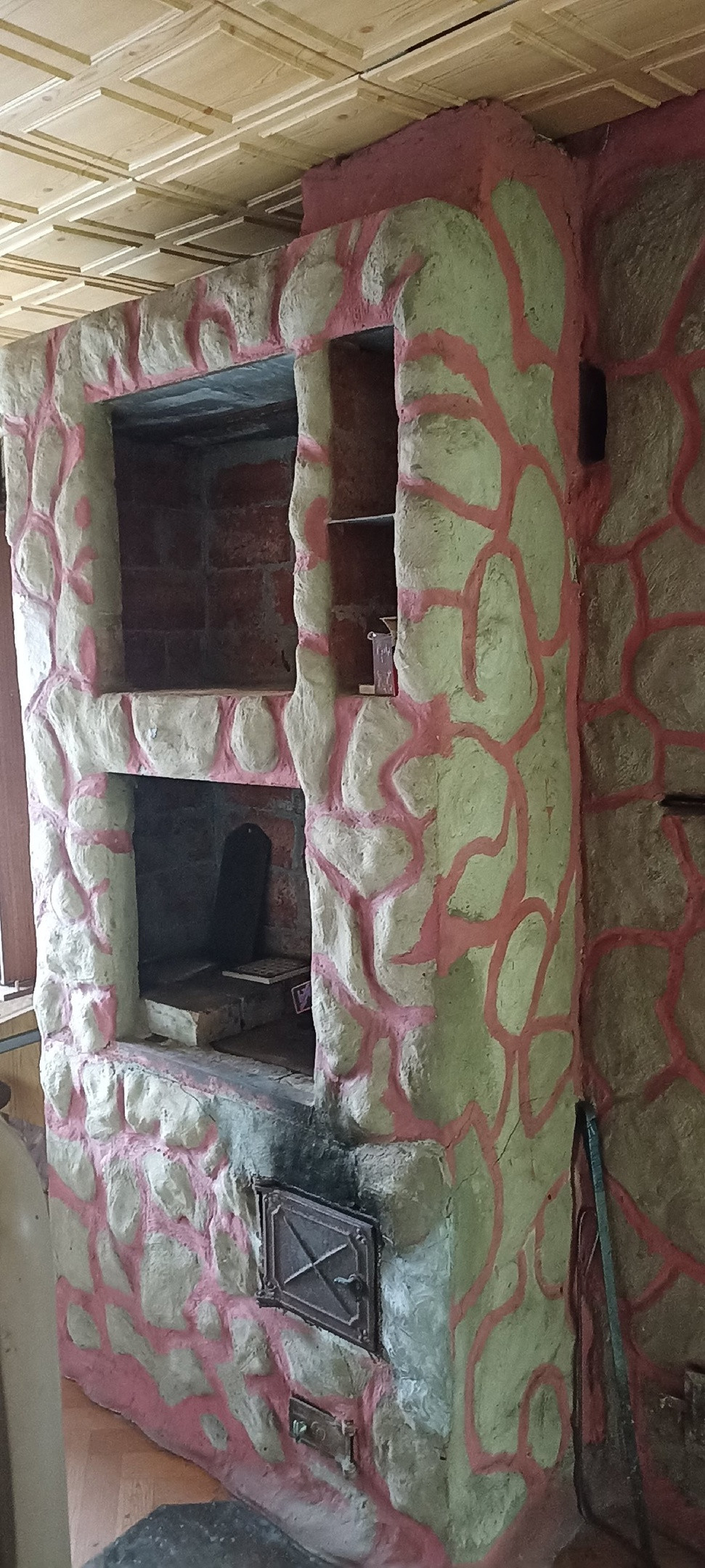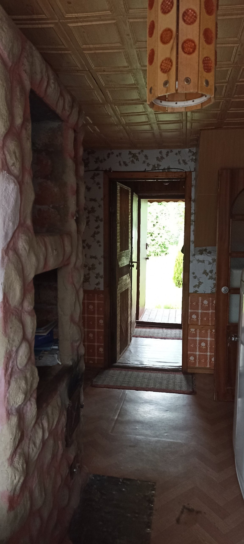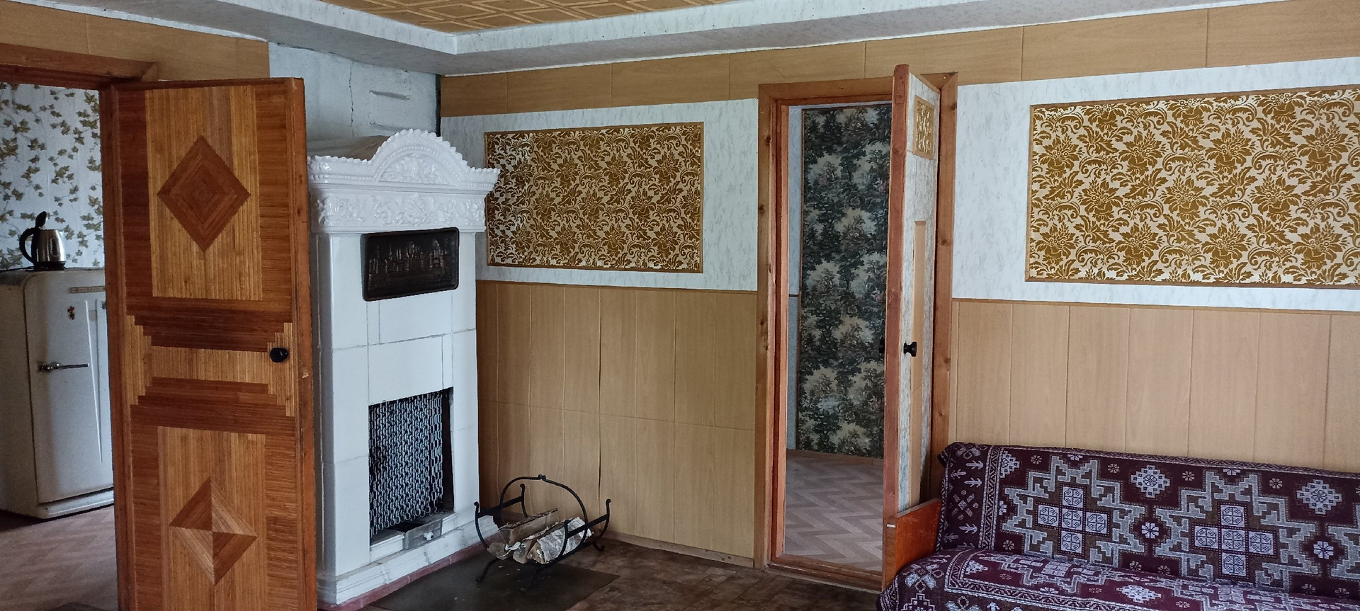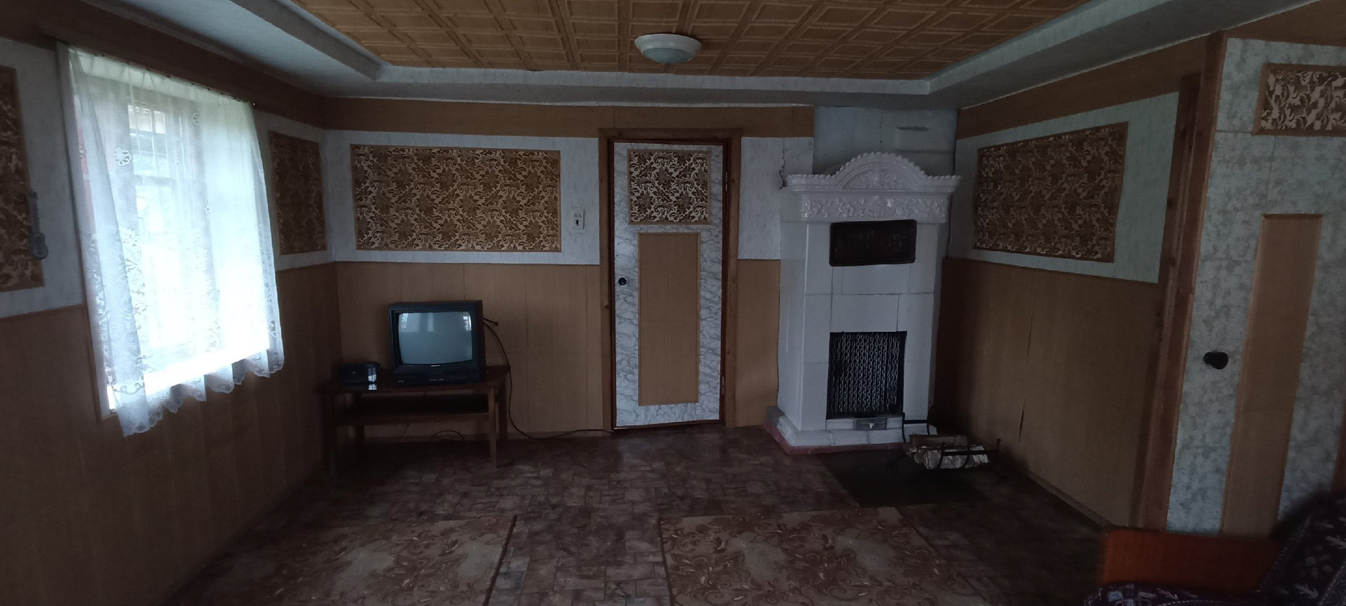 1-й этаж - гараж, кухня, гостиная с камином, спальня. Печное отопление (кроме гаража).