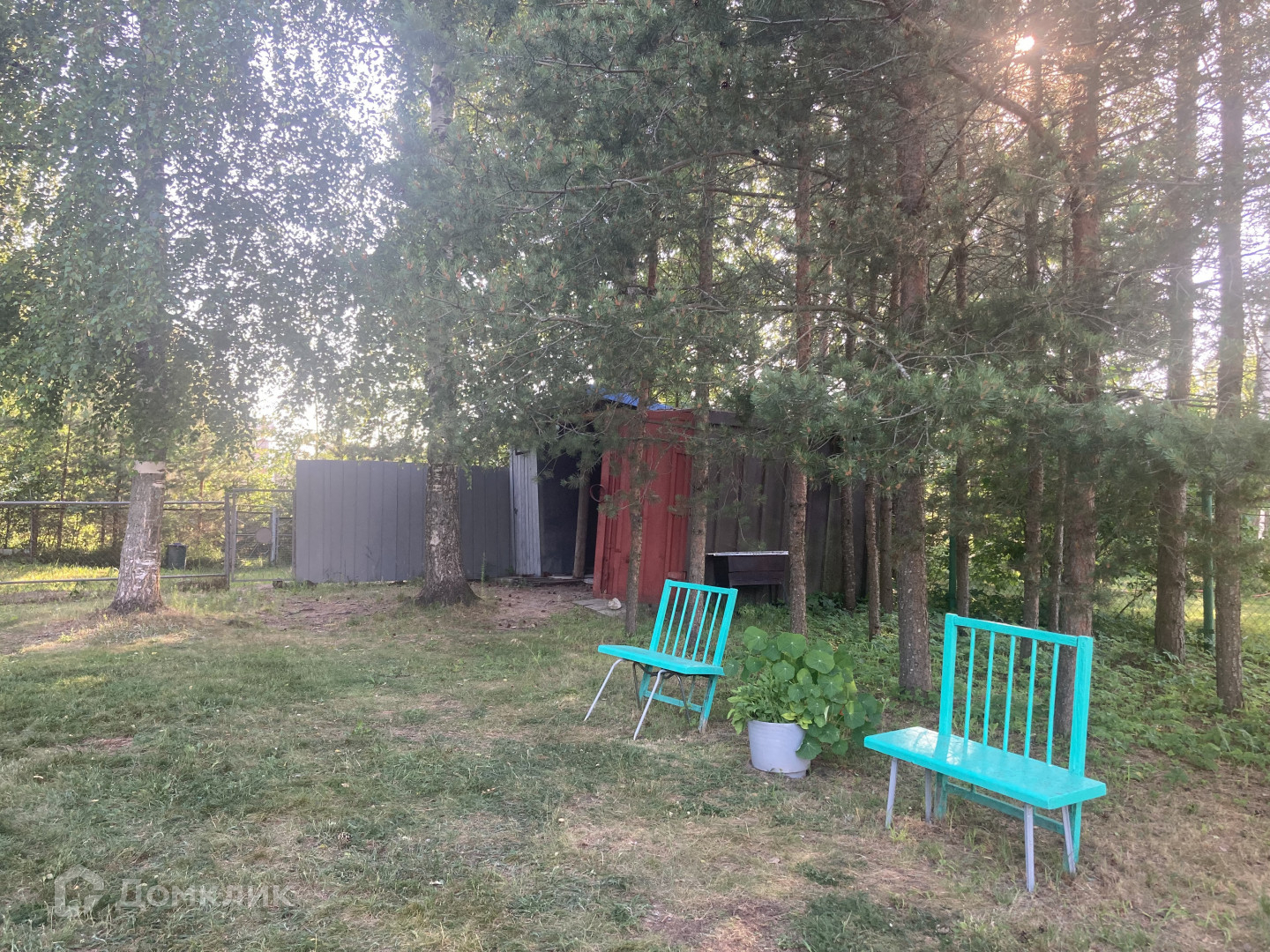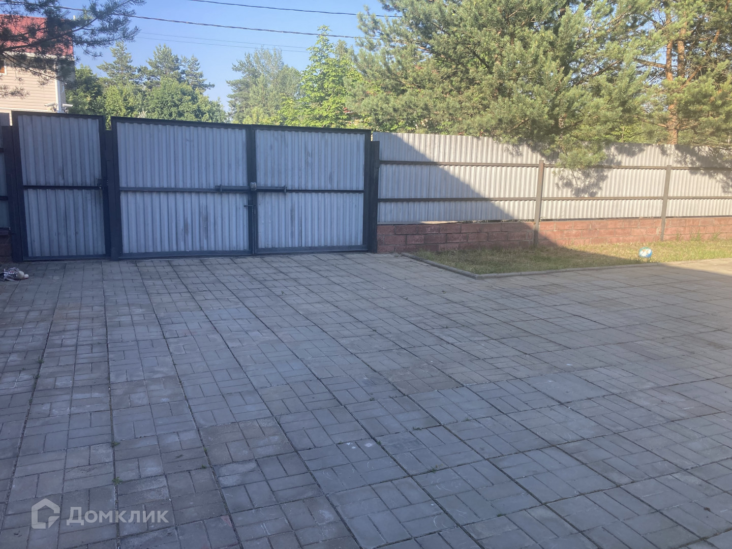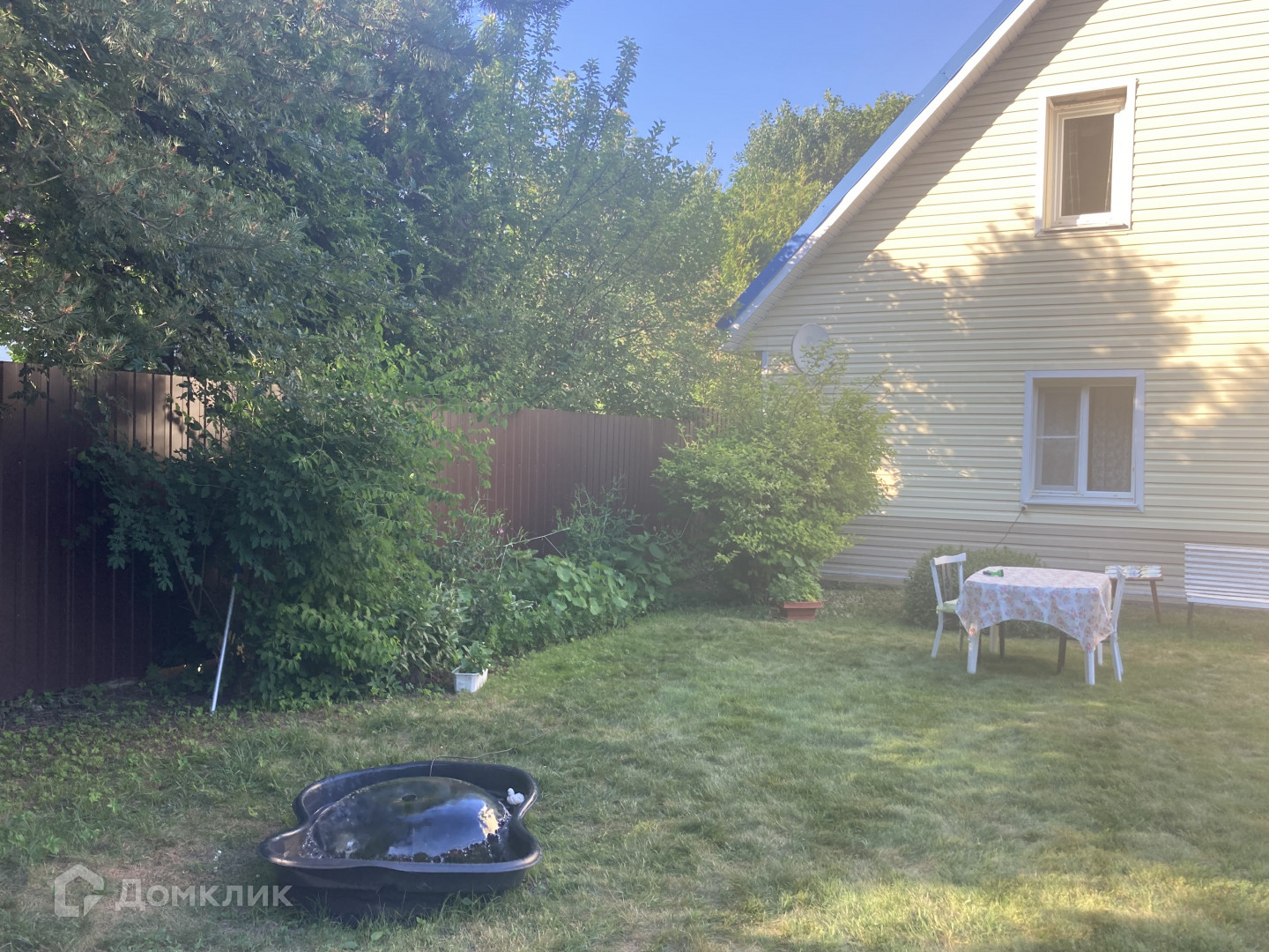 На участке есть дополнительные постройки: гараж, хозяйственные постройки, теплицы. Участок ухоженный с плодовыми деревьями и кустами, грядками, клумбами и газоном, есть фонтанчик, сразу за участком - пруд и лес. Участок огорожен металлическим забором с воротами, площадка перед домом выложена тротуарной плиткой.