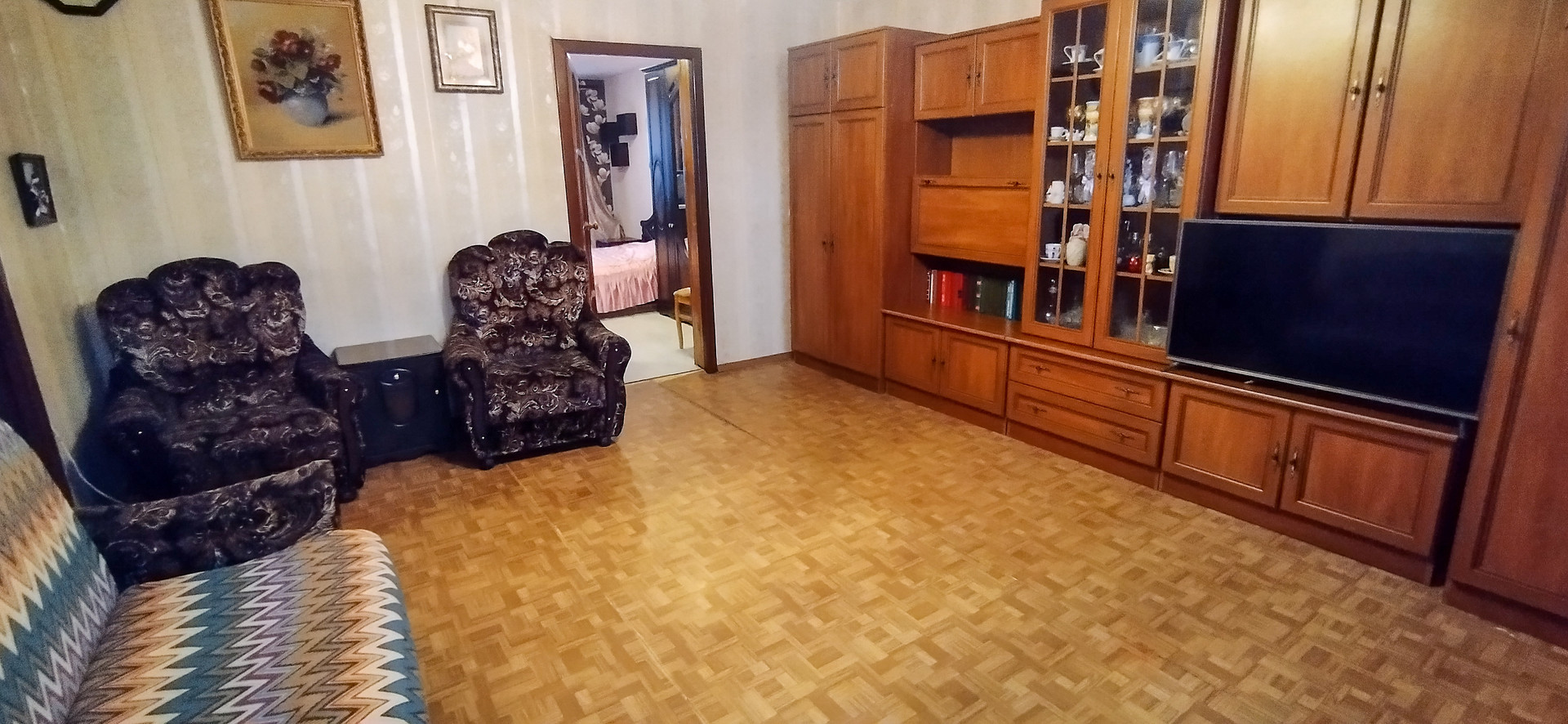 Сделан косметический ремонт в двух комнатах.