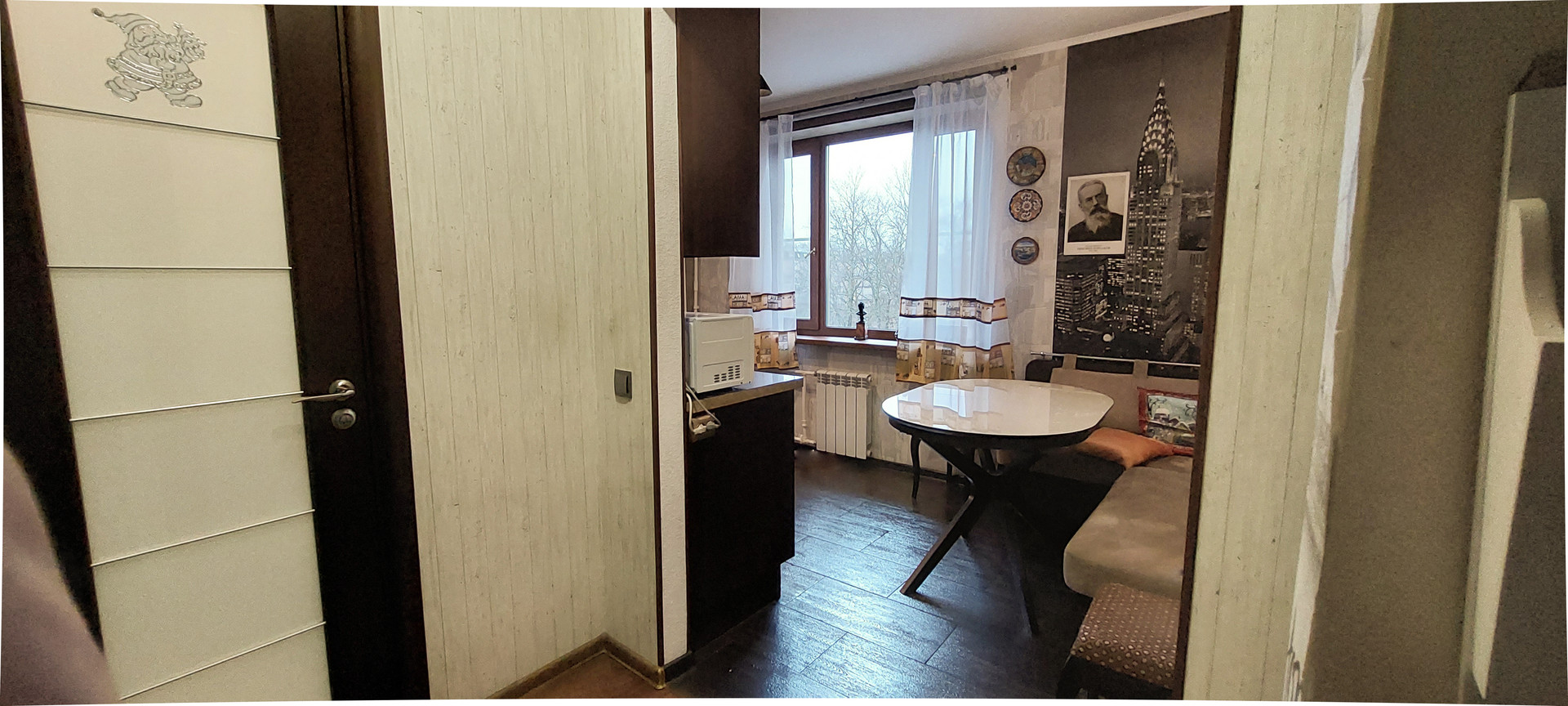 из мебели оставляем кухонный гарнитур, технику.
