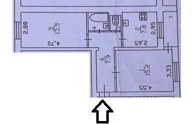 Кухня правильной формы 7,8 кв.м., комнаты по 15,2+13,5 кв.м., санузел раздельный.