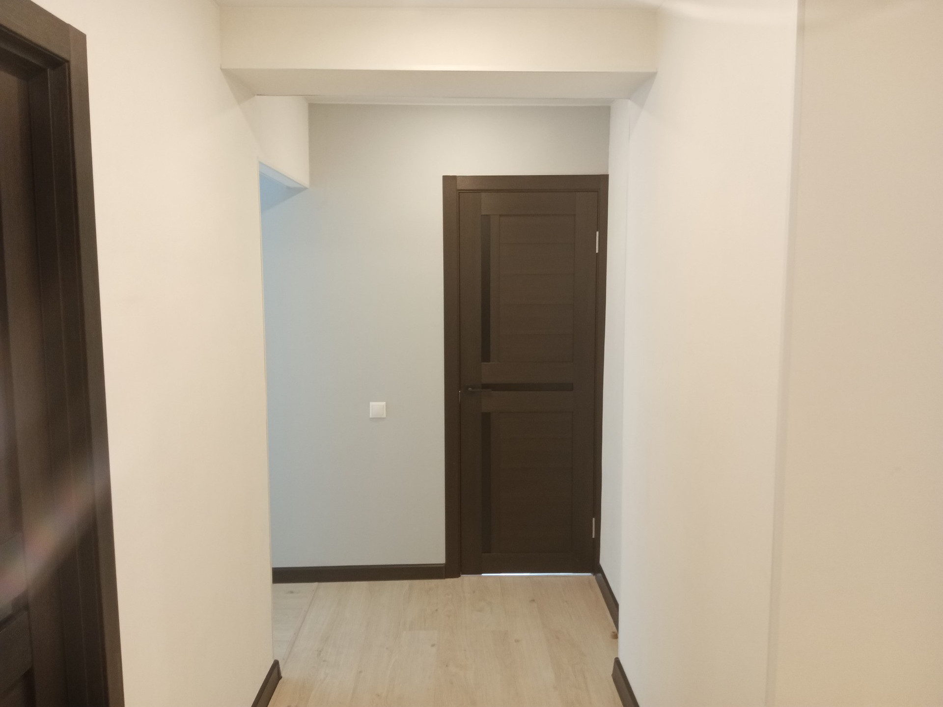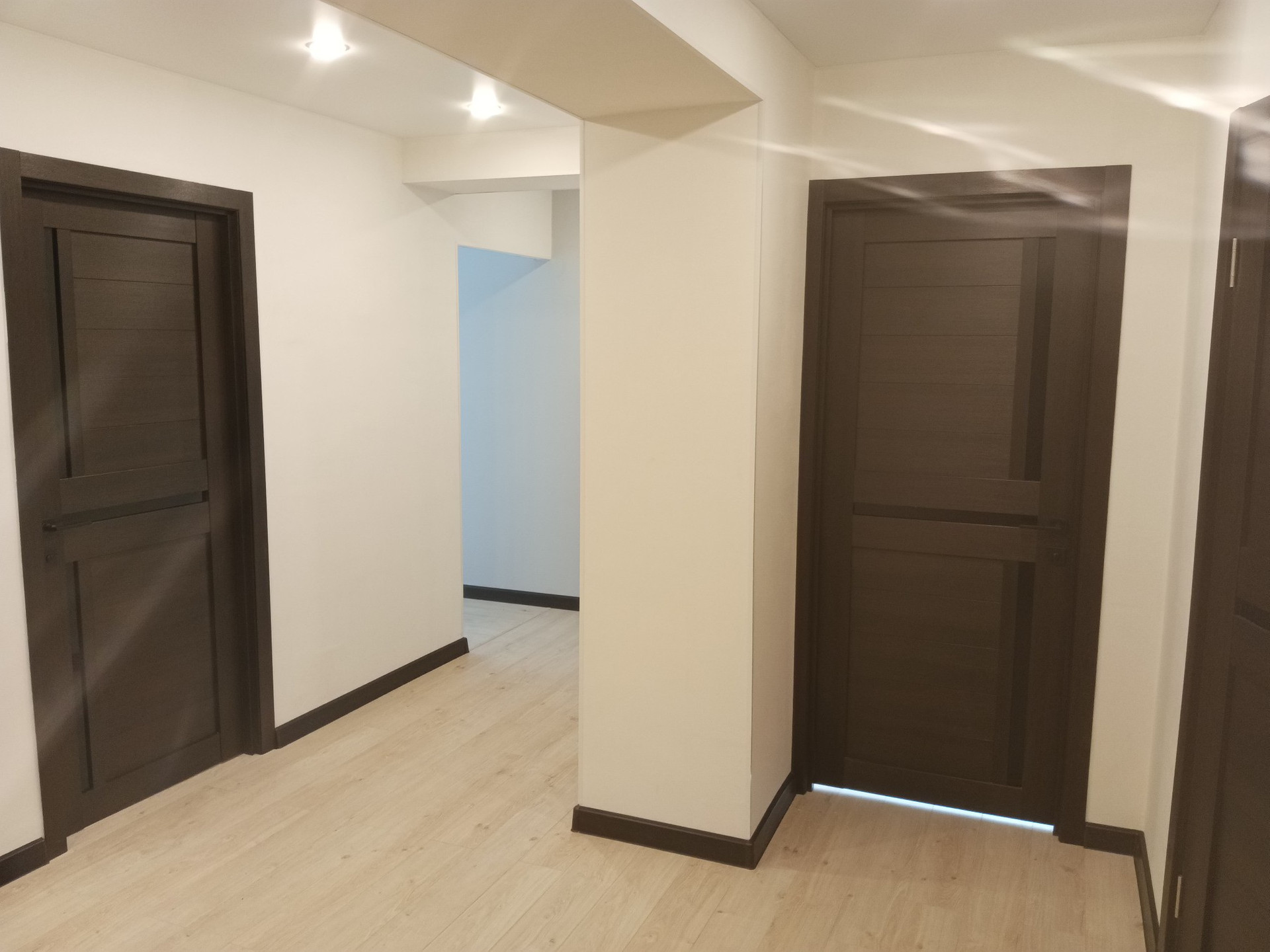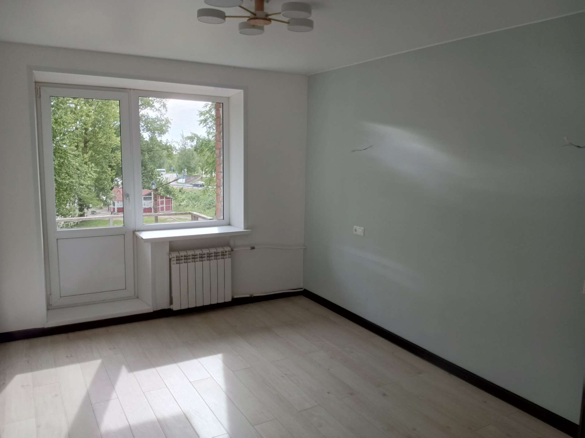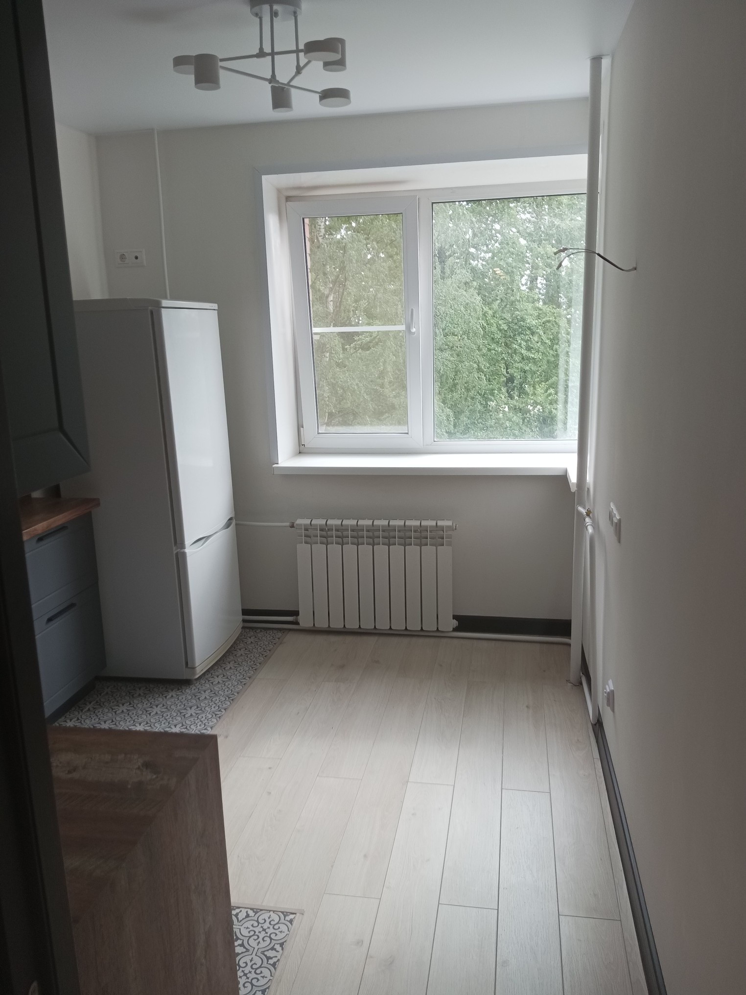 В квартире произведен капремонт с заменой электрики и сантехники. Пол стяжка, ламинат. Стены выровнены по маякам, обои под покраску. В ванной, туалете и на кухне установлены теплые полы.