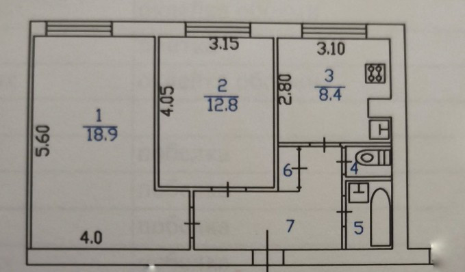 Санузел 1 раздельный