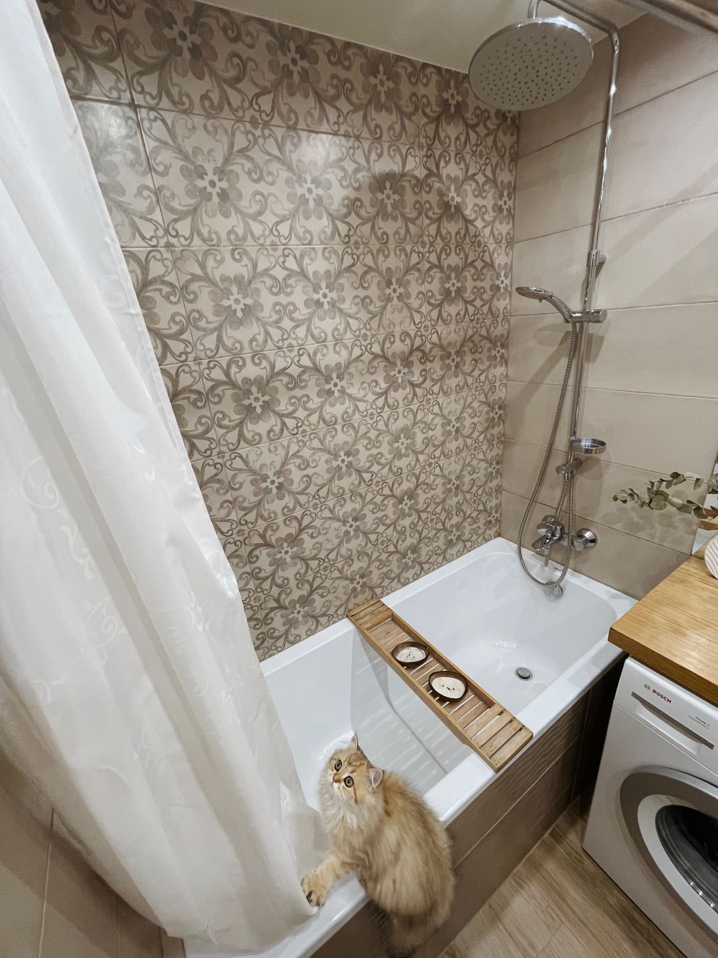 Горячая вода, газ. На случай отключения ГВС установлен бойлер.