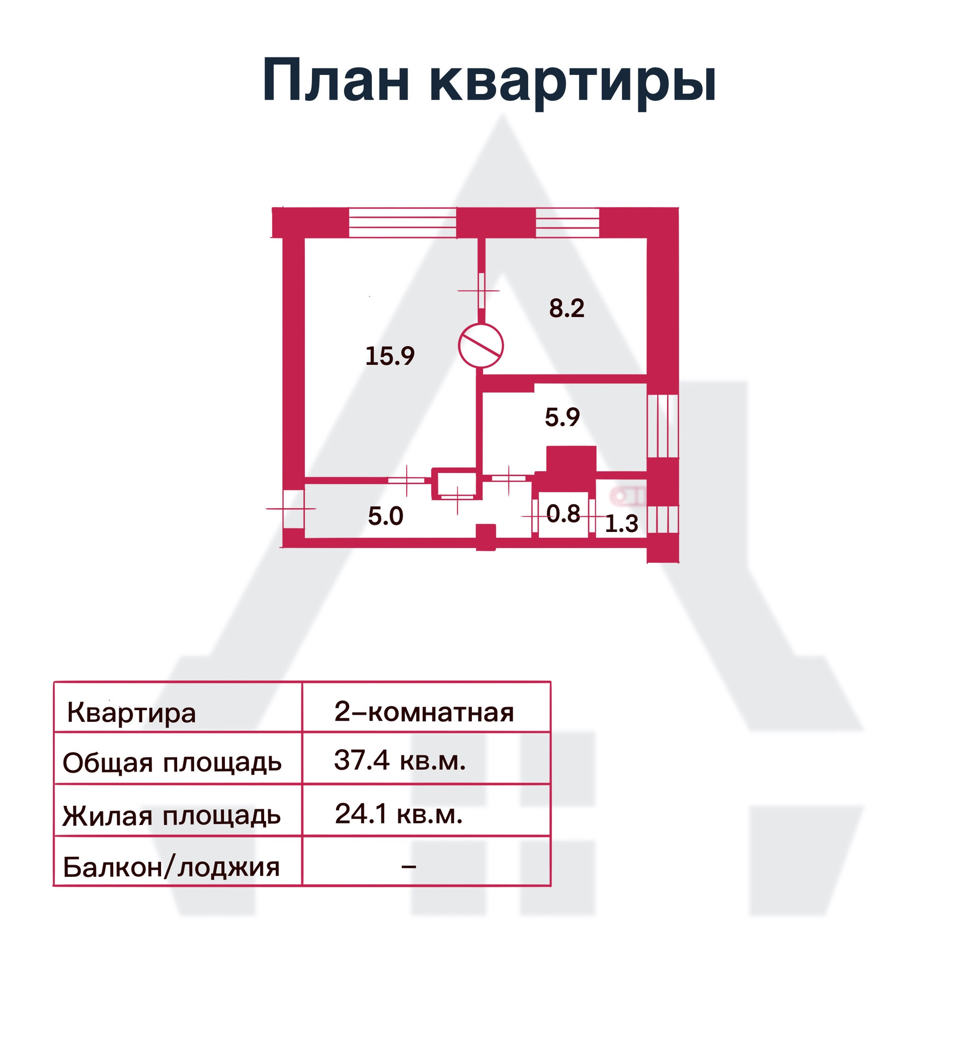 Общая площадь 37.4 м2