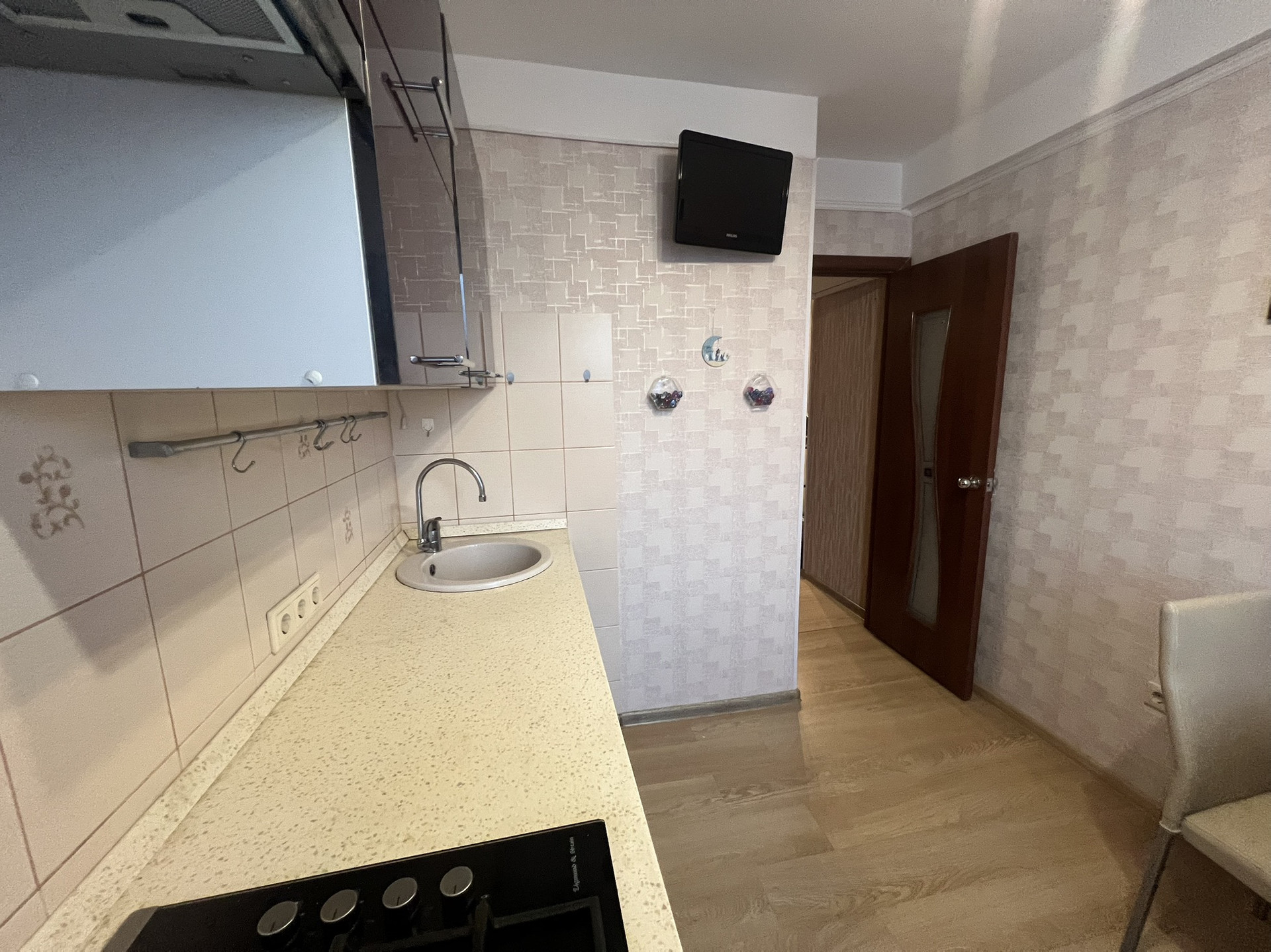 Рядом с домом вся инфраструктура. Новый детский сад и школа. Скоро откроется новый стадион. Мебель и техника остаются.