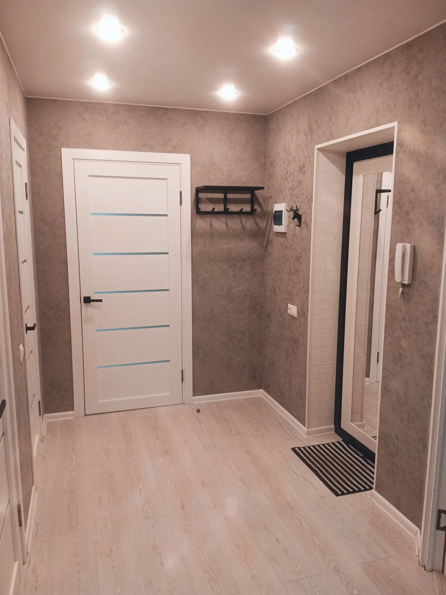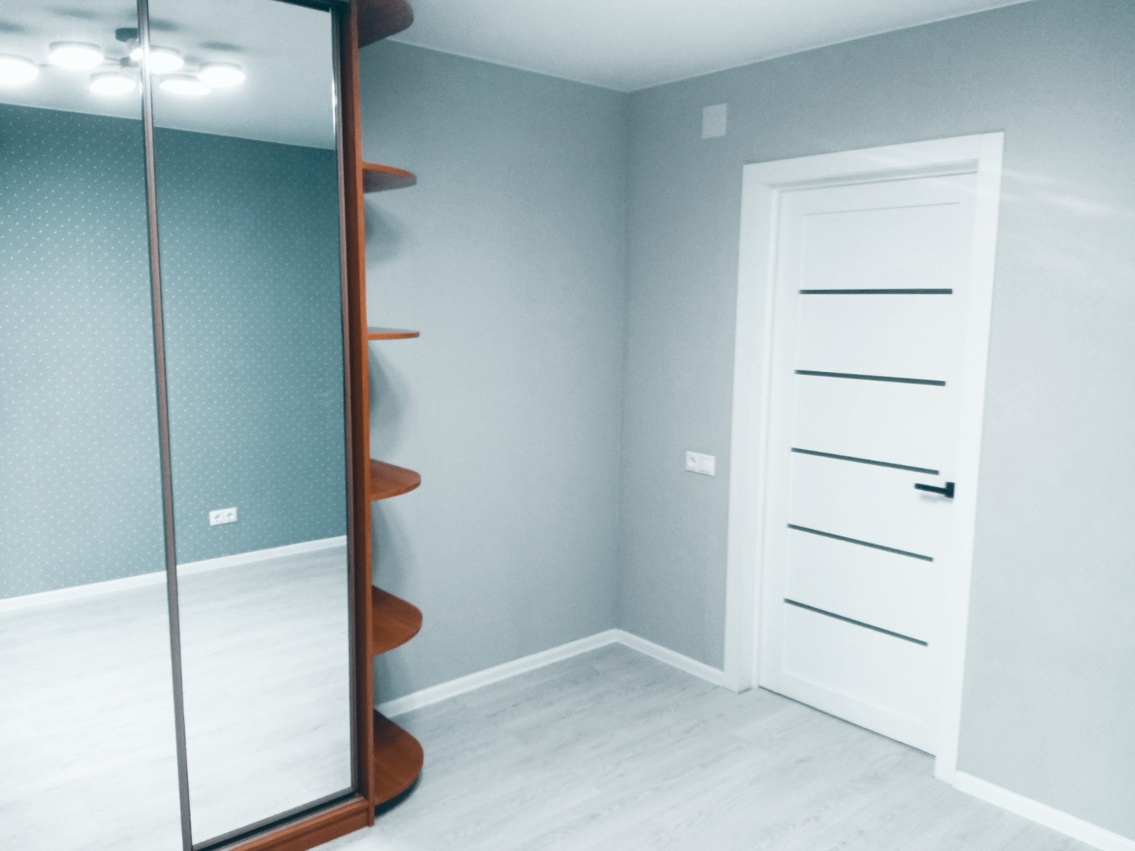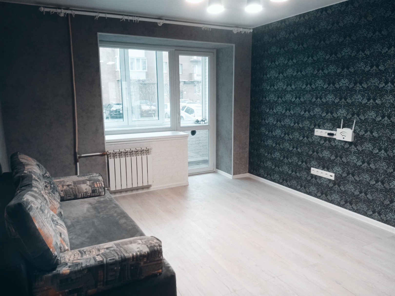 В квартире проведен капремонт с заменой электропроводки и труб, полы заменены на бетонную стяжку, постелен ламинат. Стены выровнены по маякам. Потолки натяжные. Полы в ванной, туалете и на лоджиях с подогревом. Обе лоджии утеплены и остеклены двухкамерными стеклопакетами.