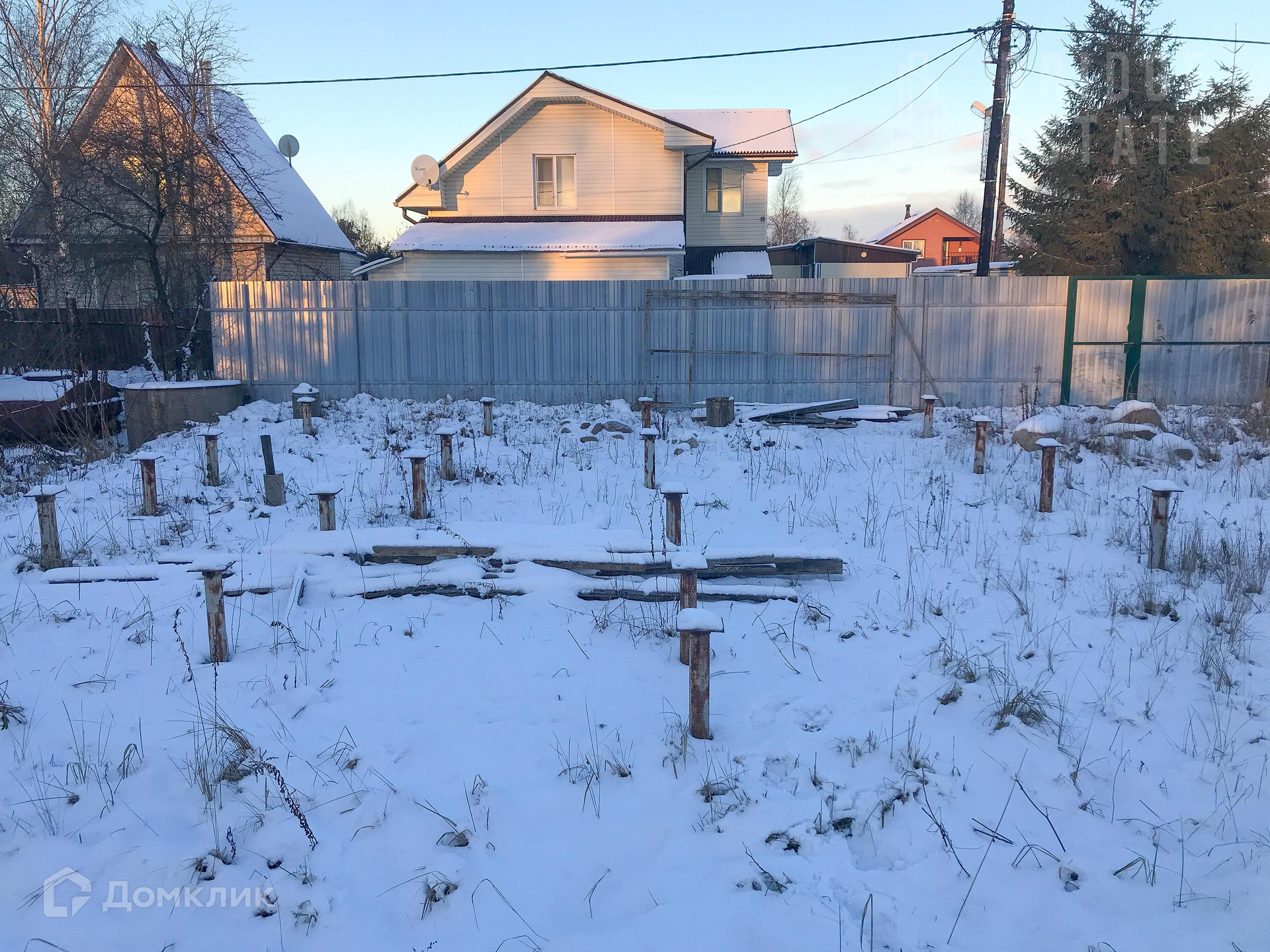 Нa учacток зaвeдена трубa c центральным водоснабжением. Электричество 15 кВ! – остается только возвести дом и подключить провод. На выделенной зоне, которую отсыпали песком, построили свайный фундамент. На нем изначально планировался дом с террасой.
