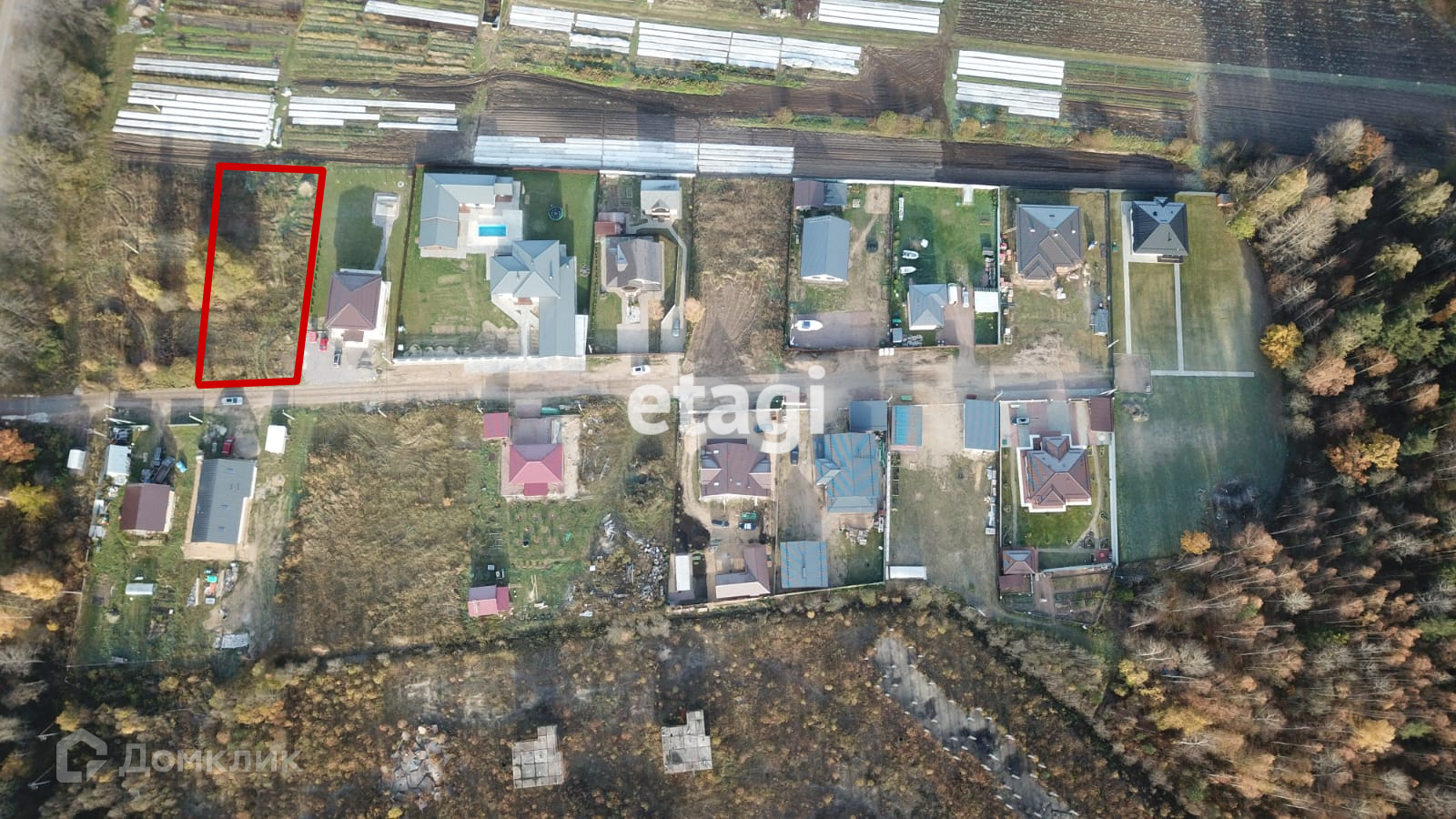 - участок и близлежащие дома окружены рощей смешанного леса (лиственные и хвойные деревья)