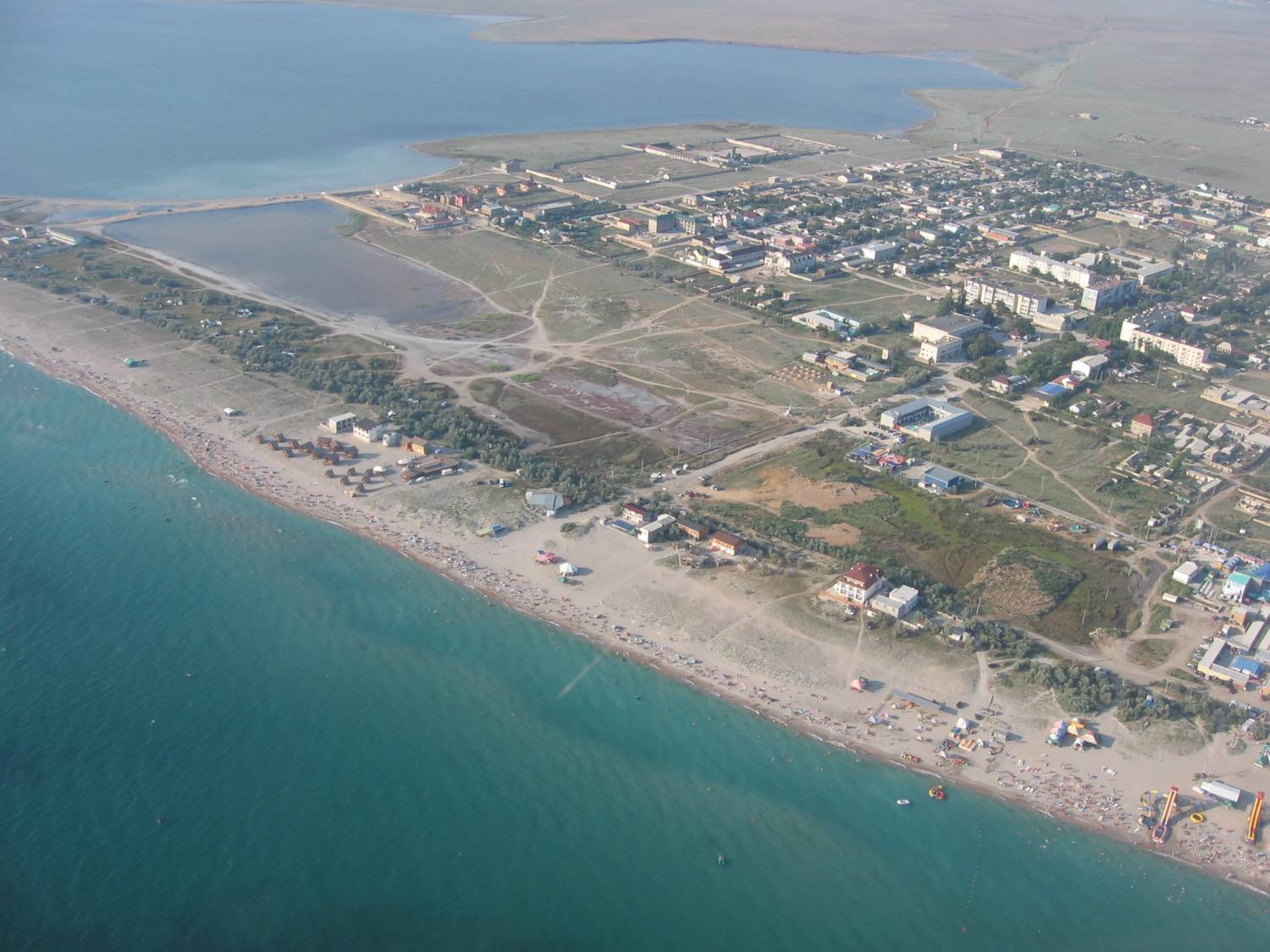 Самые лучшие песчаные пляжи,не глубокое море. Рядом два соленых озера с розовой солью и лечебной грязью.Уже с мая можно греться,загорать,купаться,лечиться.