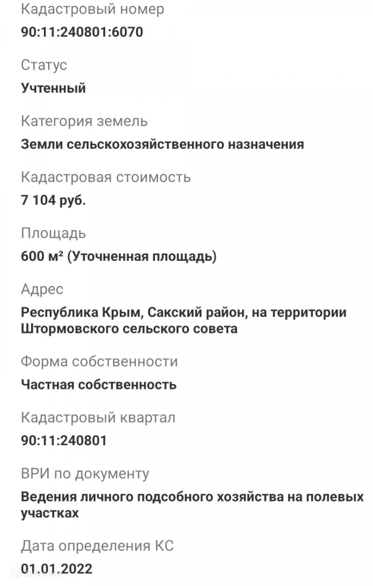 Уникальный участок недалеко от моря в курортном поселке Штормовое, в самом сердце прекрасного Сакского района Республики Крым. Площадью 6 соток, данный участок идеально подойдет для постройки уютного коттеджа или загородного дома. С юридическим статусом личного подсобного хозяйства и приватизированным земельным участком, вы будете иметь полное право владеть этим участком и использовать его для своих нужд.