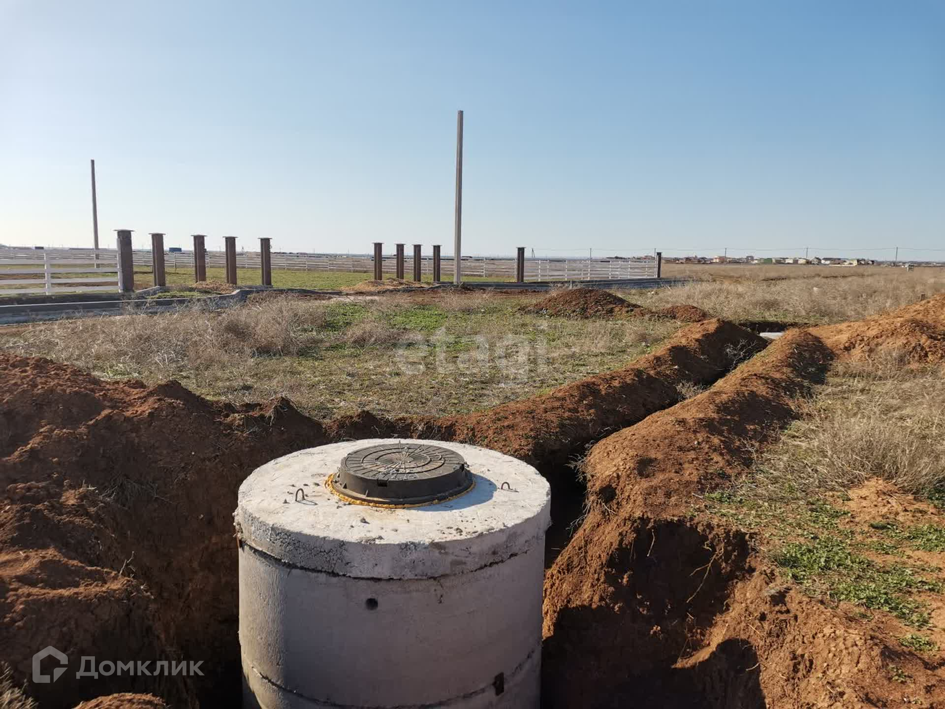 Участок правильной прямоугольной формы находится на расстоянии 500 м от моря. На участке есть декоративное ограждение, отсыпаны дороги, уличное освещение, автоворота, въездная группа. До с.Молочное - 10 км, до с.Уютное 15 км, до центра г.Евпатория 20 км.