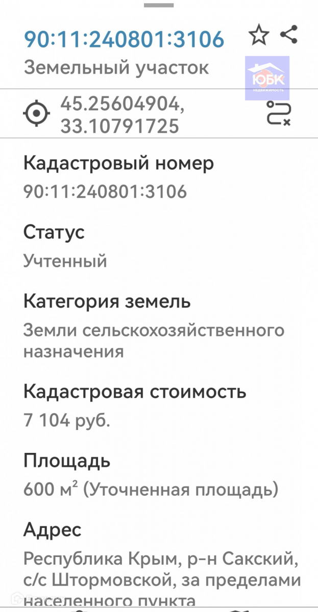 Продаётся участок в САкском район, с/с Штормовской 6 соток общей площадью, район Крымские  дачи. Участок находится не далеко от моря.