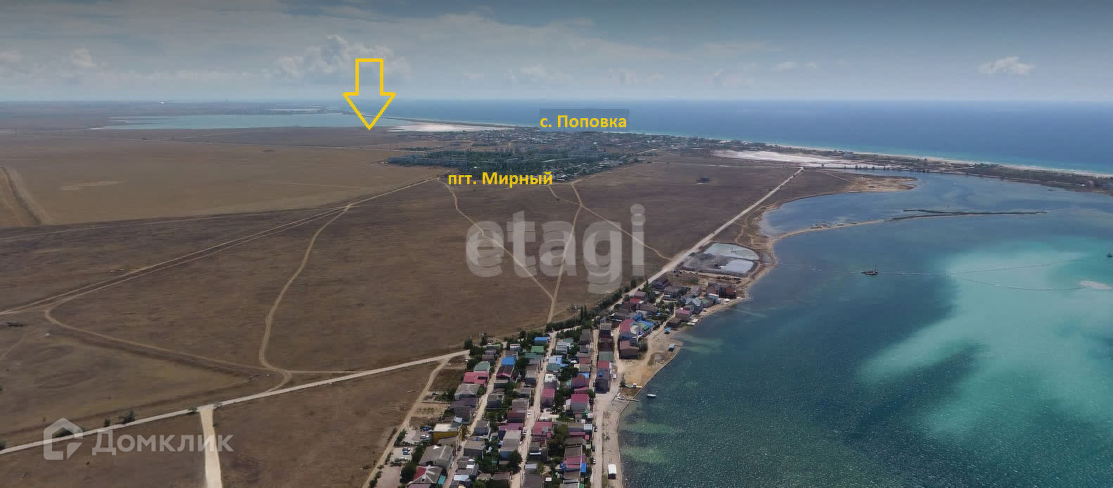 До морского пляжа с белым песком («крымские Мальдивы») – 750 метров. До автомобильной трассы Симферополь-Евпатория-Мирный, по которой проходит весь трафик Западного Крыма – менее 850 метров.