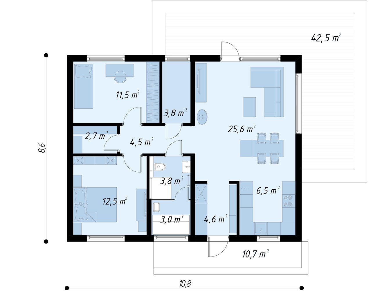 1 этаж 79 кв.м + терраса 30 кв.м