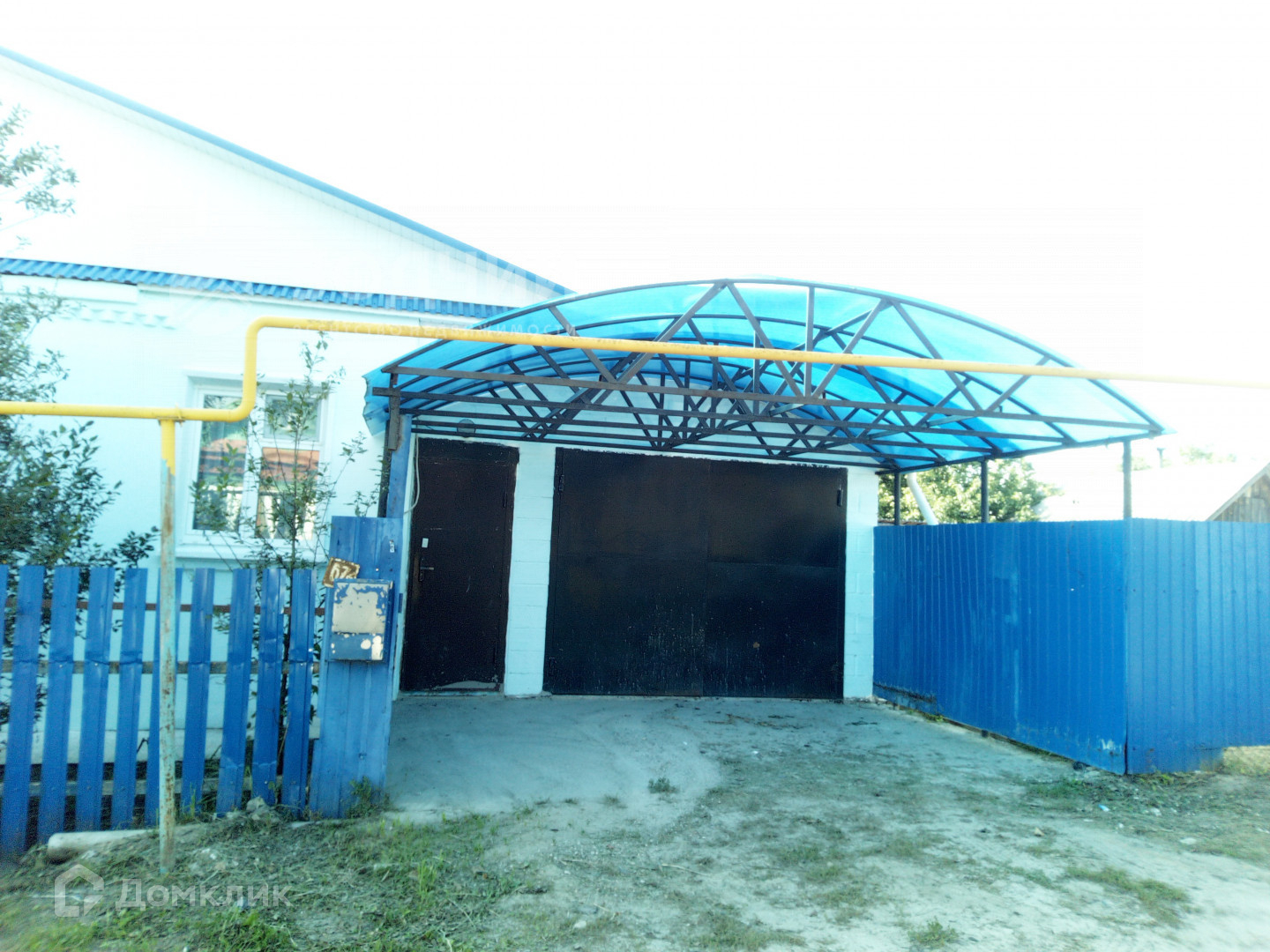 Перед домом установлен навес для автомобиля.
