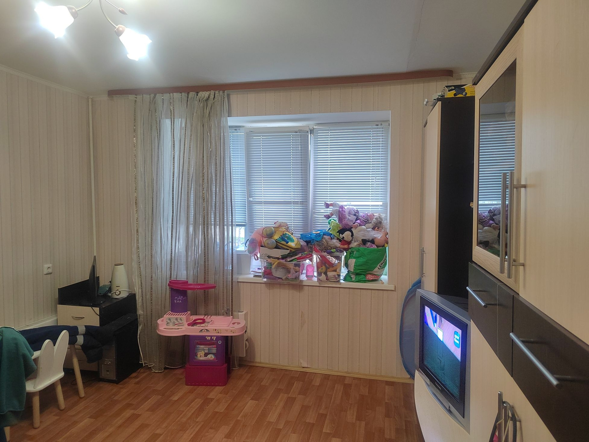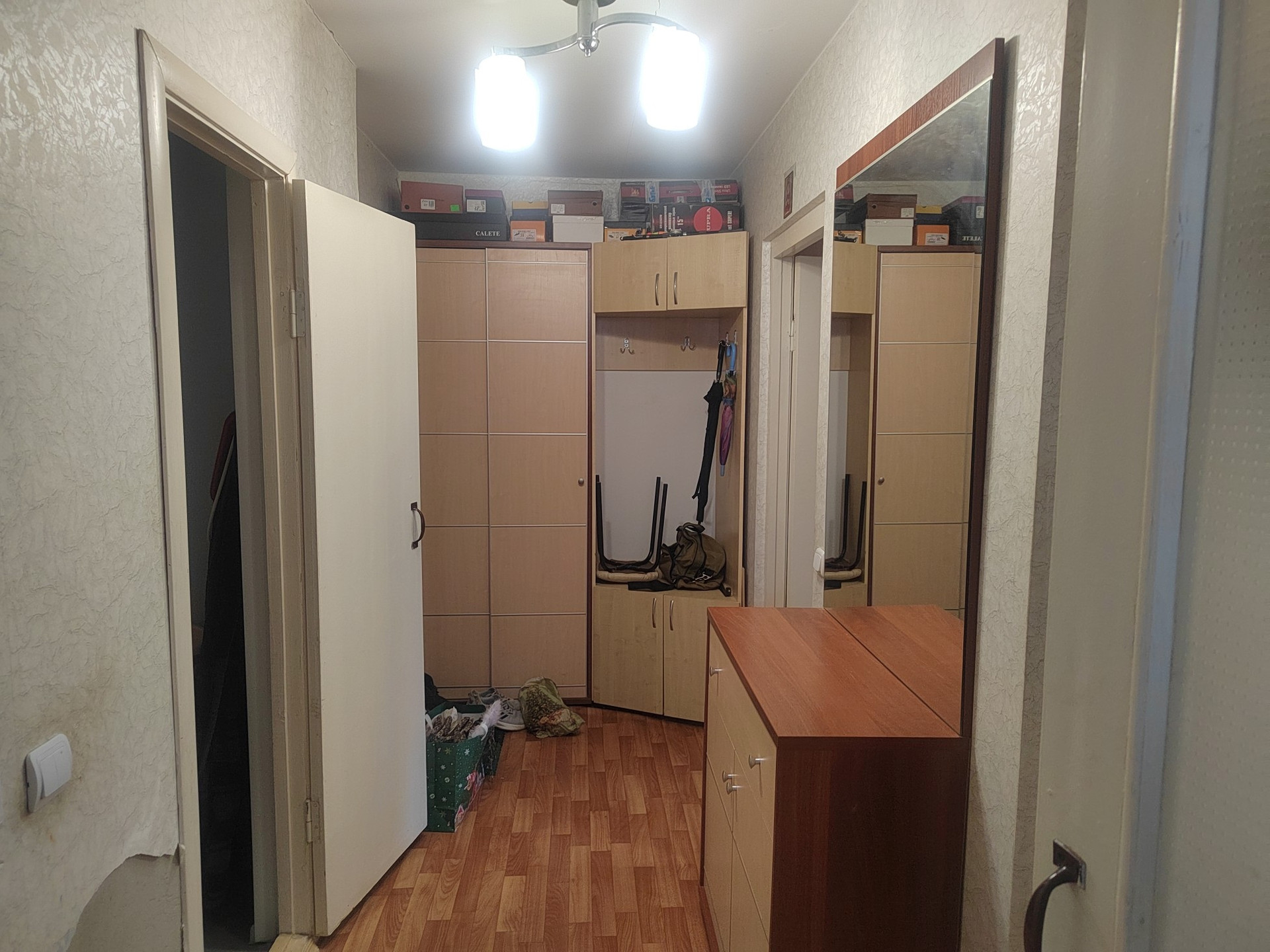 Продаём двухкомнатную квартиру, в новом кирпичном доме. На четвёртом этаже. Есть балкон. Стоят пластиковые окна, железная дверь. На полу линолеум. Санузел раздельный, стоит водонагреватель. Ванна обшита панелями. Оставим встроенные шкафы и кухонный гарнитур. Рядом школа, садик, стадион, рынок.