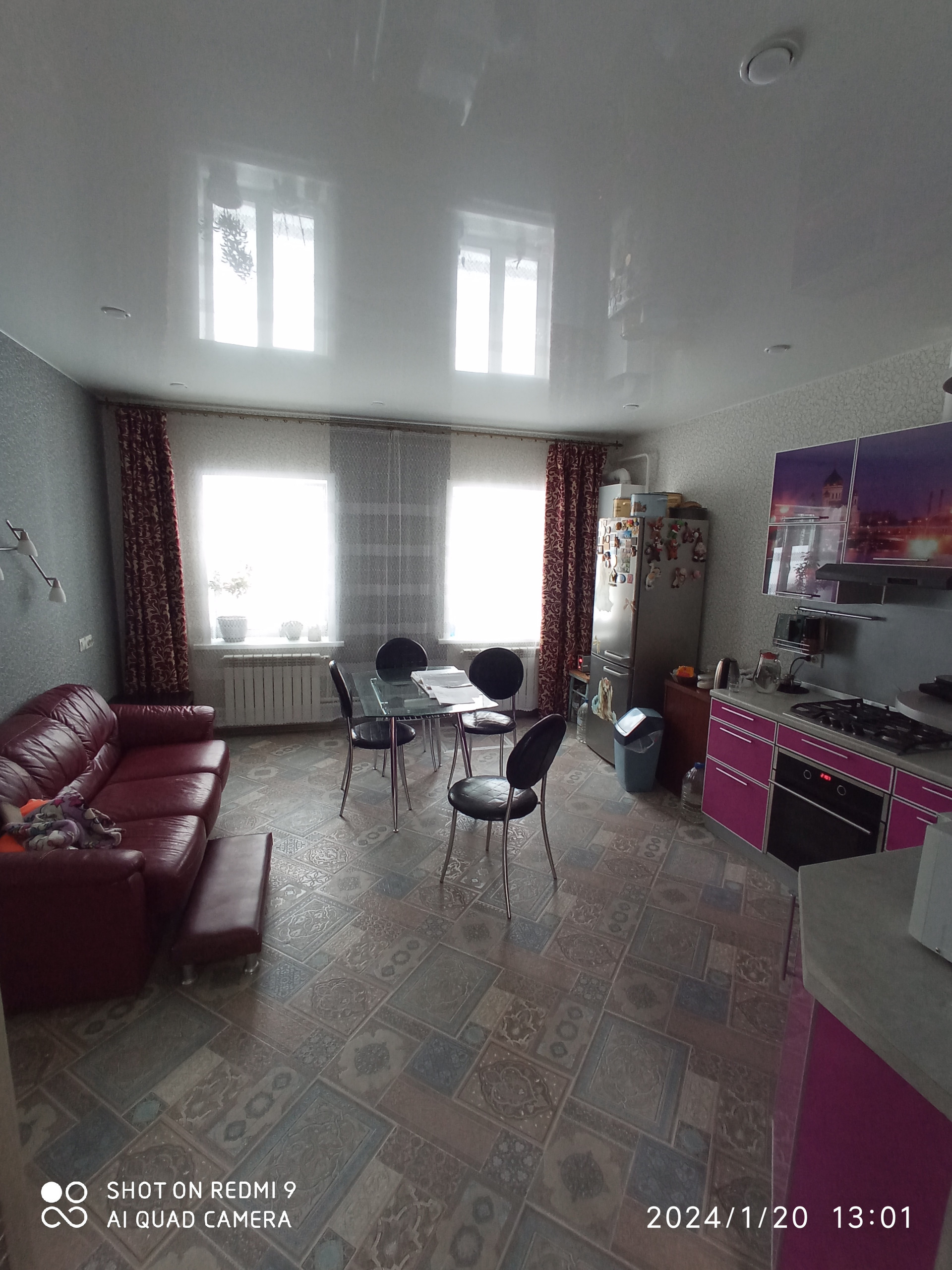 Все окна ПВХ, большие , в доме много света. . Сделан косметический ремонт, стены гипсокартон, качественные обои, натяжные потолки, межкомнатные двери, ленолеум, сан узел -кафель, душевая кабина.