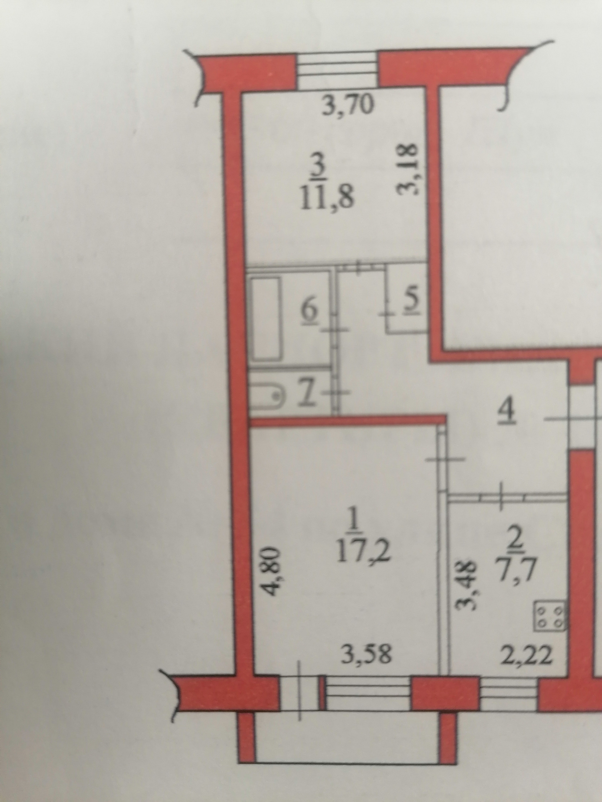 Балкон, лоджия 1 балкон
