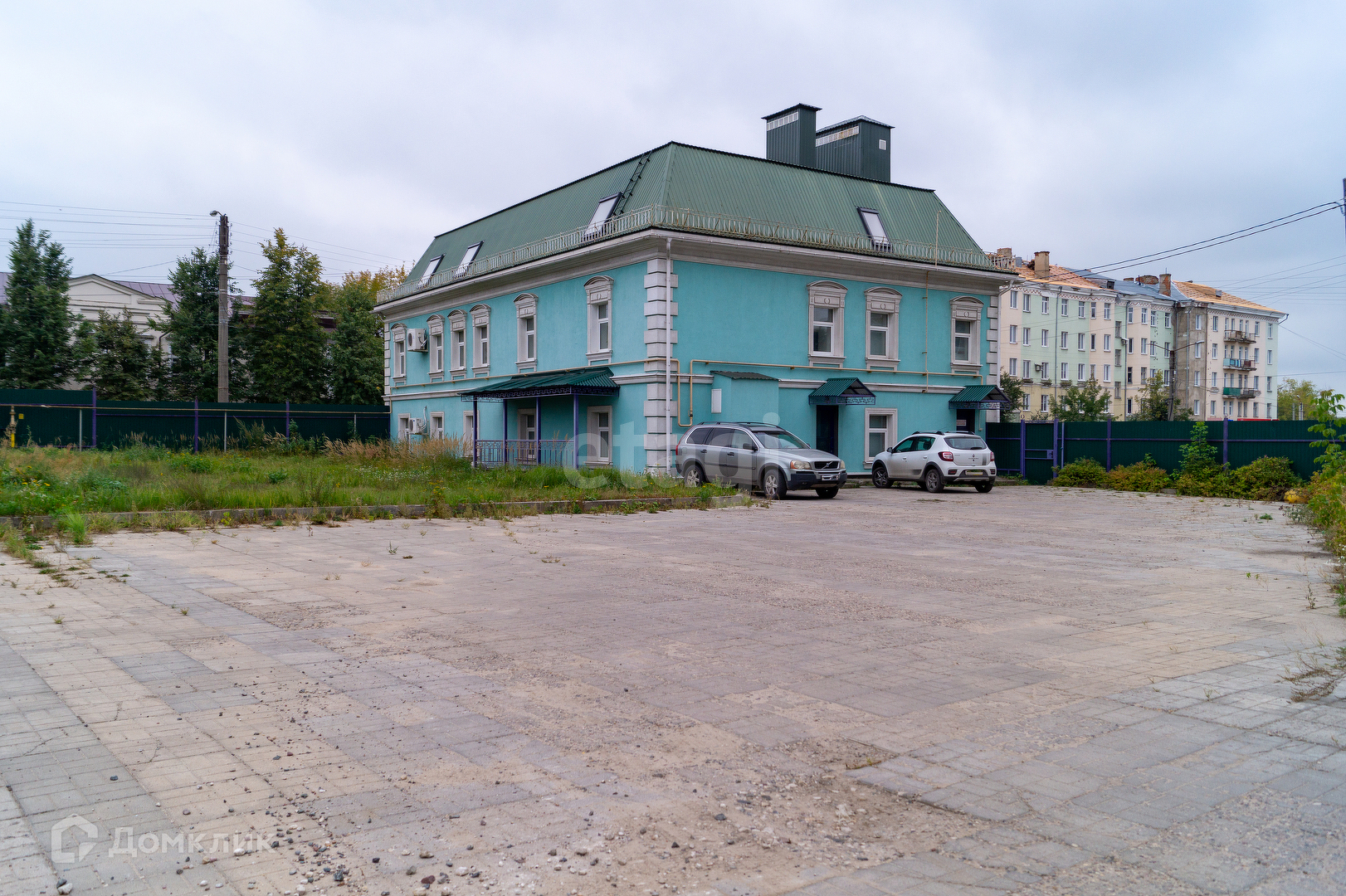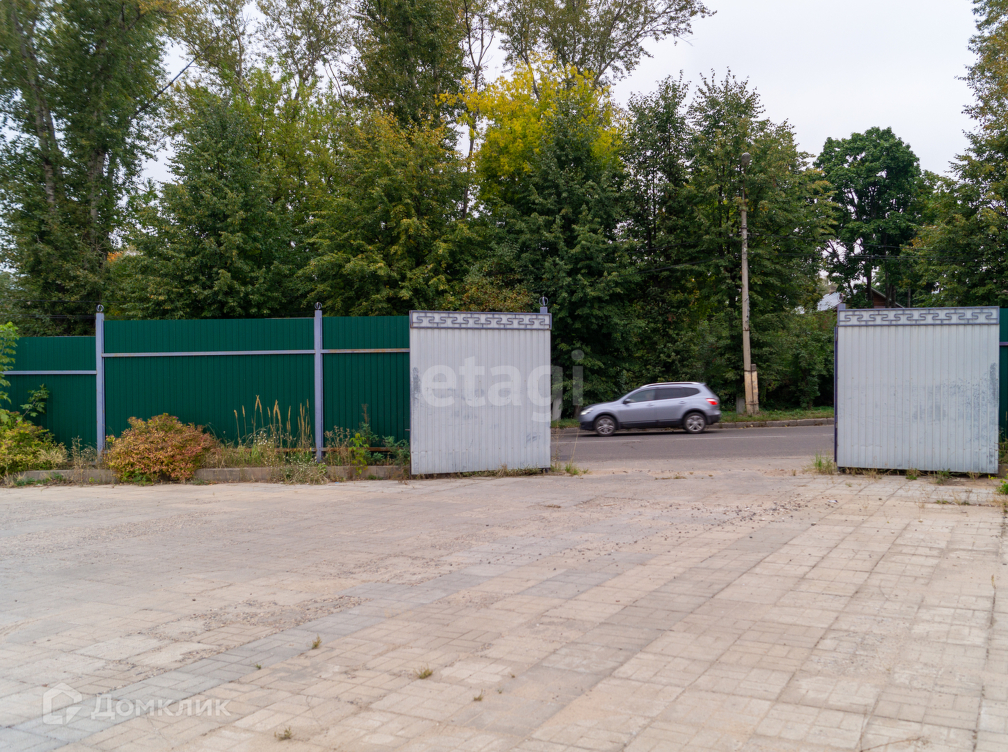 - Территория огорожена металлическим забором с воротами.