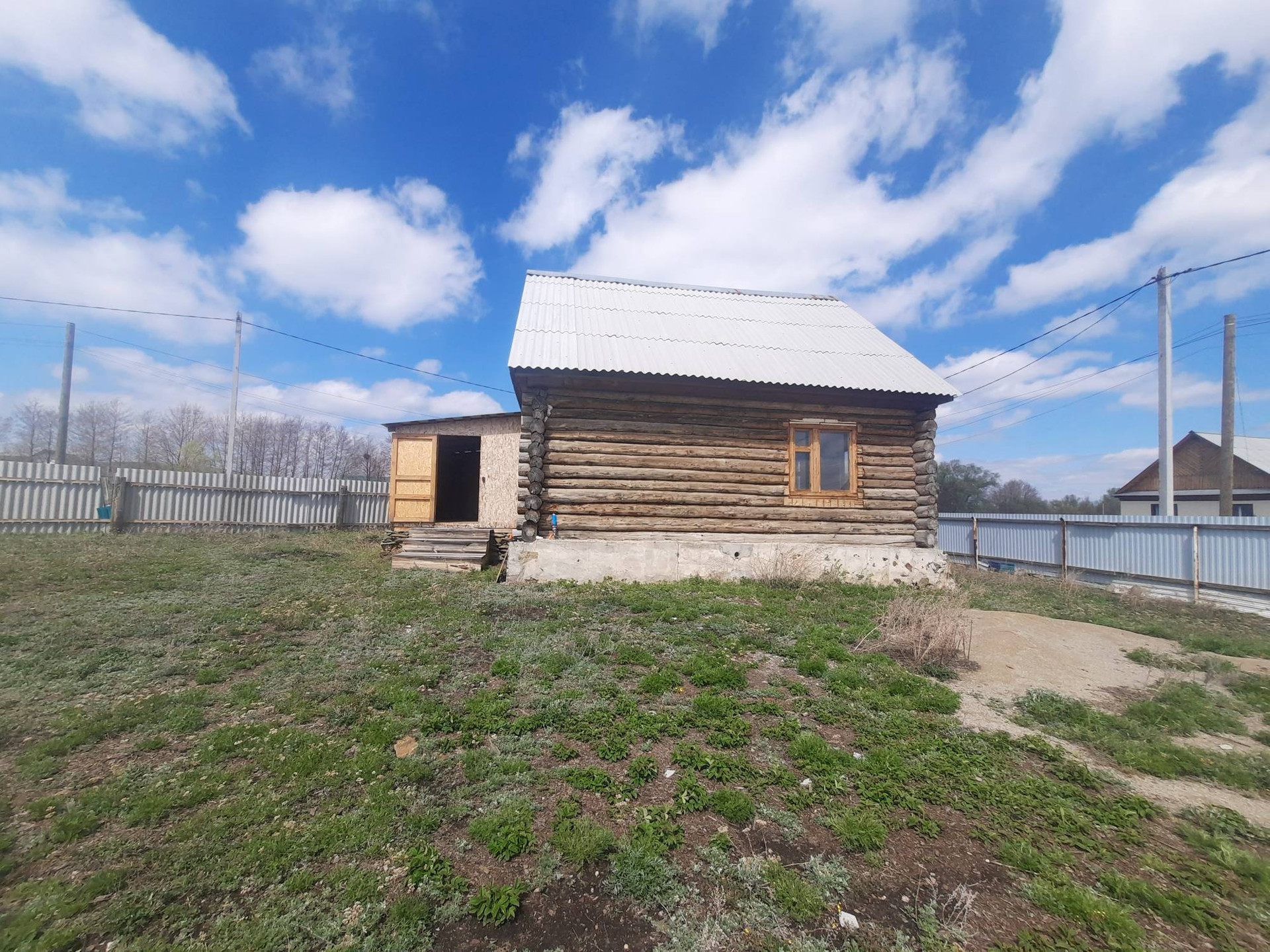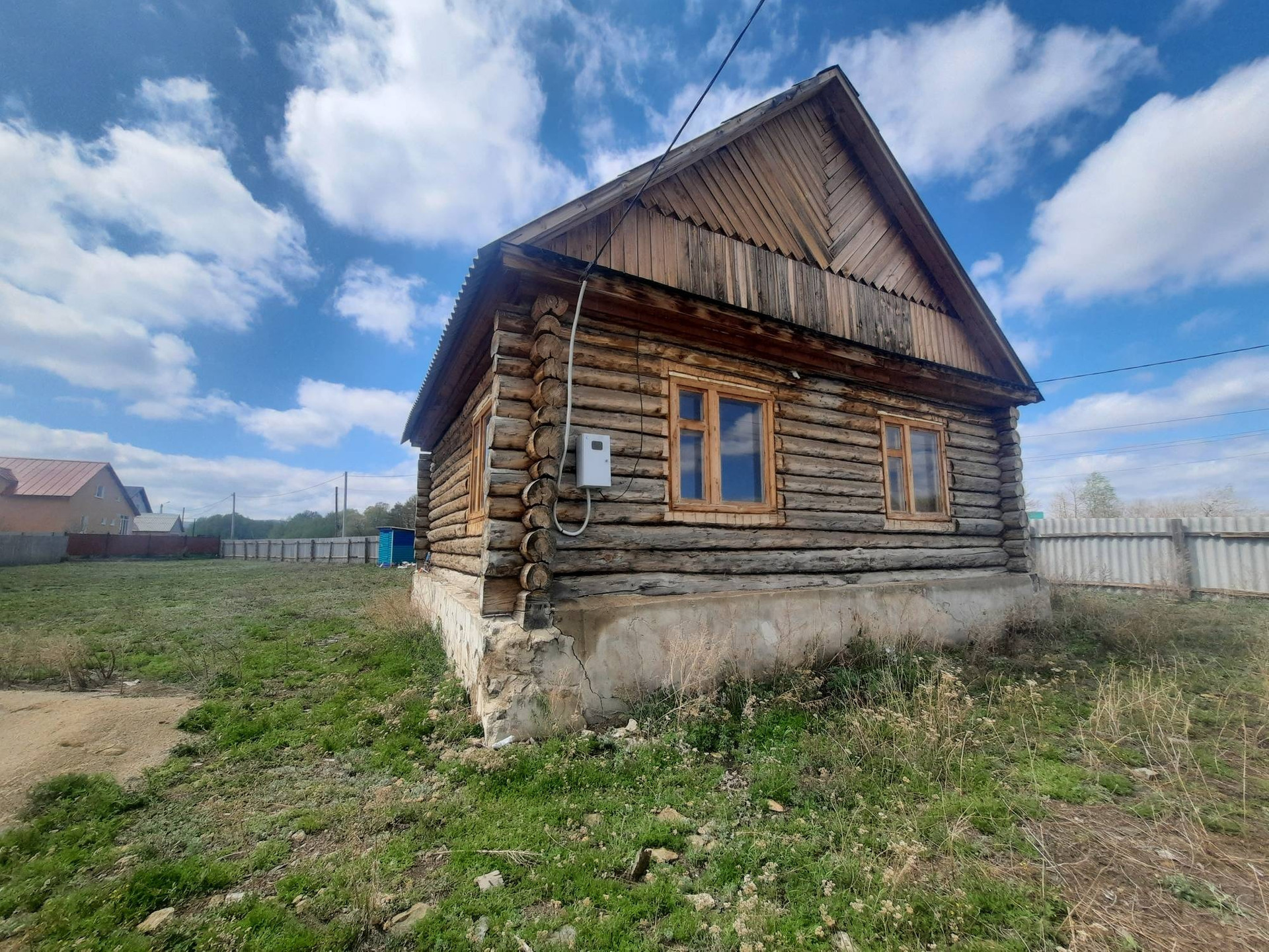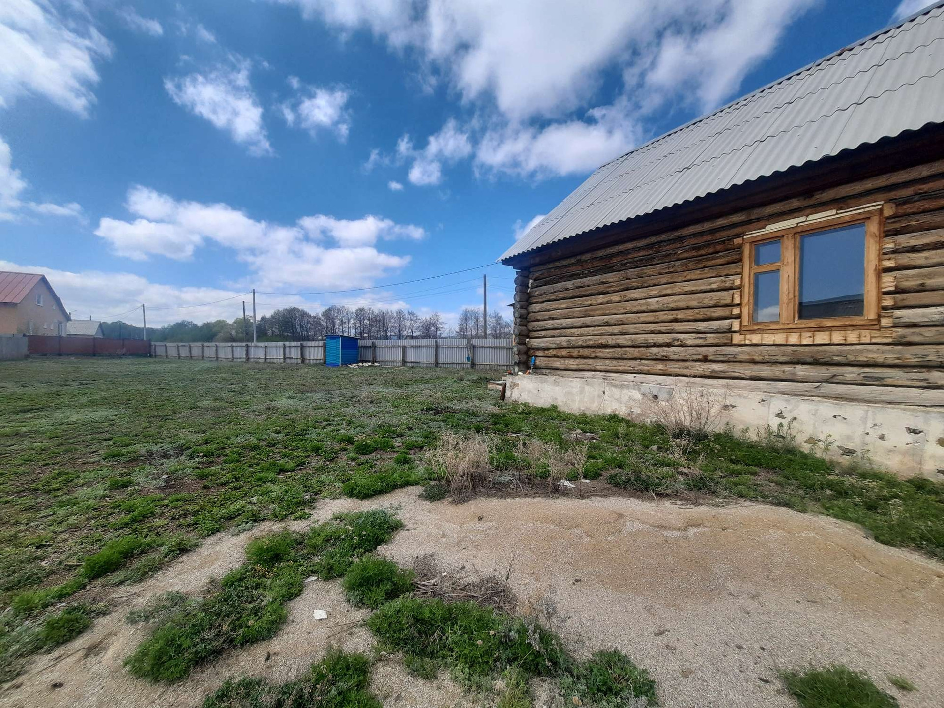 Дом 56 кв.м. из бревна. Участок 12 соток огорожен. Свет на 380 проведен.