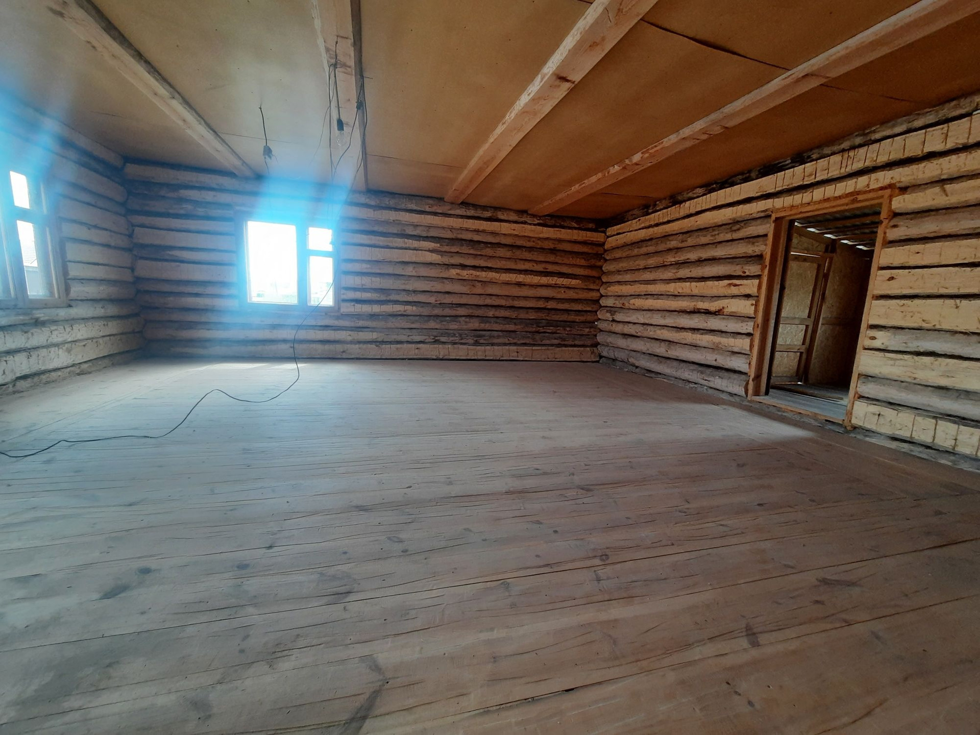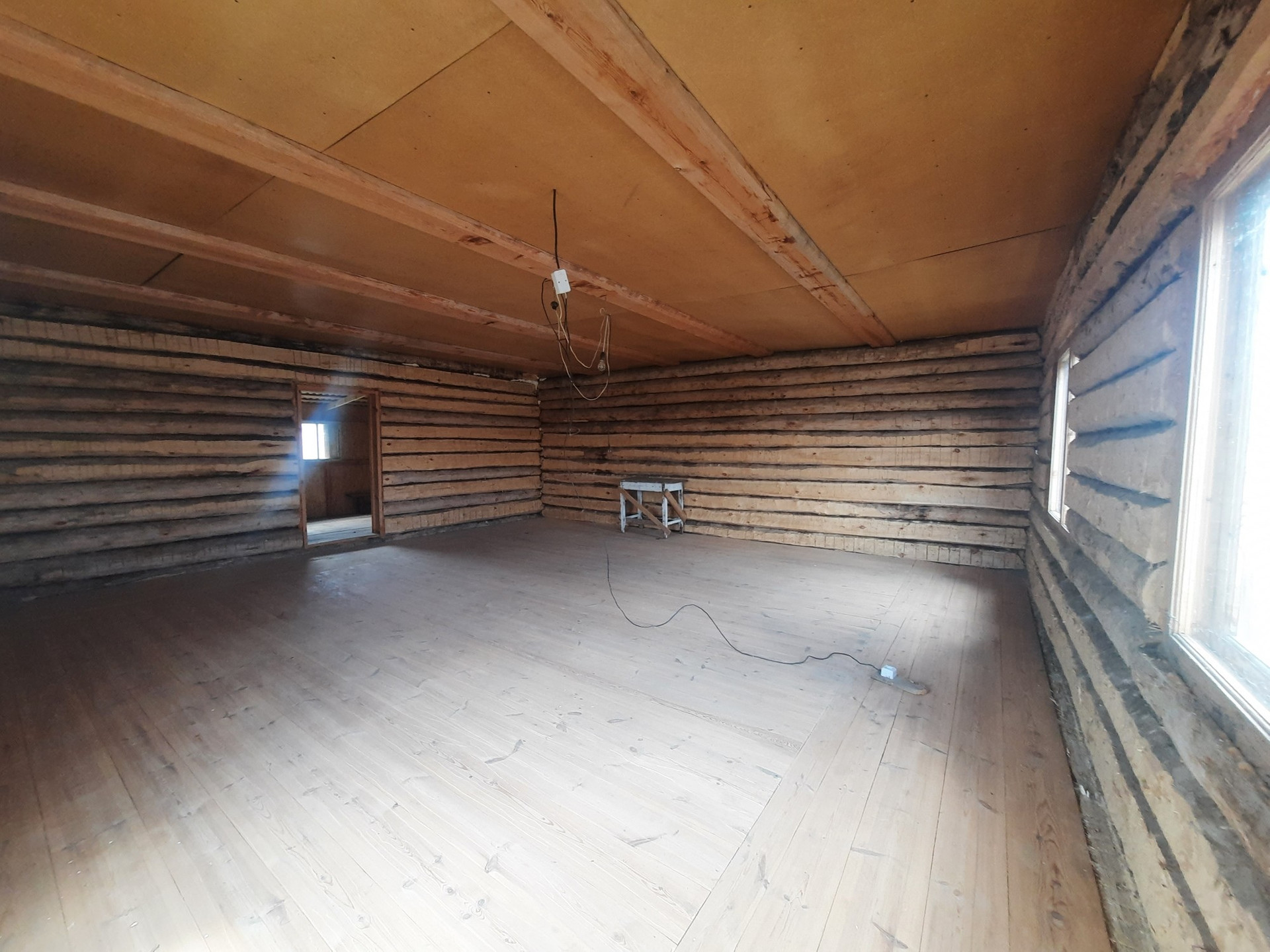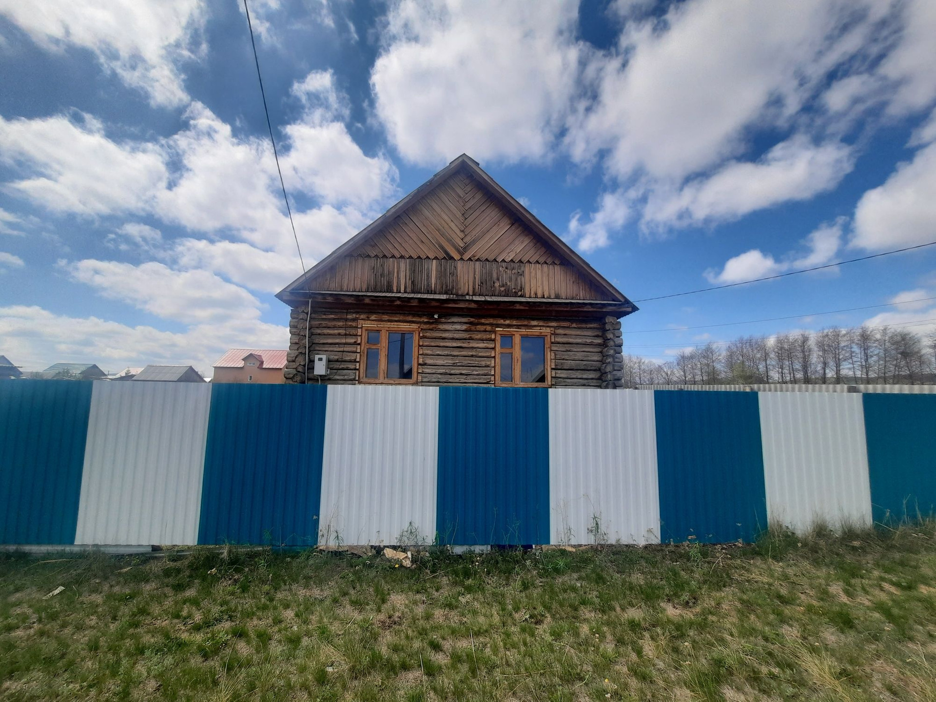 Дом 56 кв.м. из бревна. Участок 12 соток огорожен. Свет на 380 проведен.