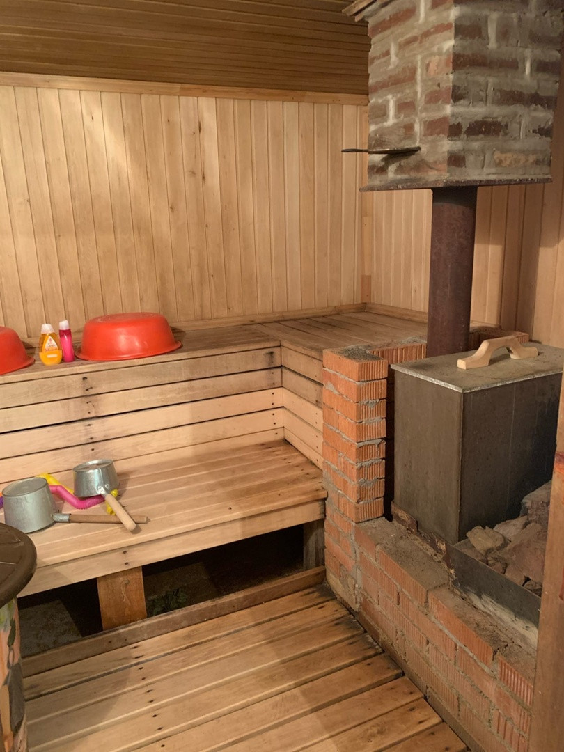 Имеется подвальное помещение по всему периметру дома, где расположены комната отдыха, котельная, кладовая для заготовок на зиму.