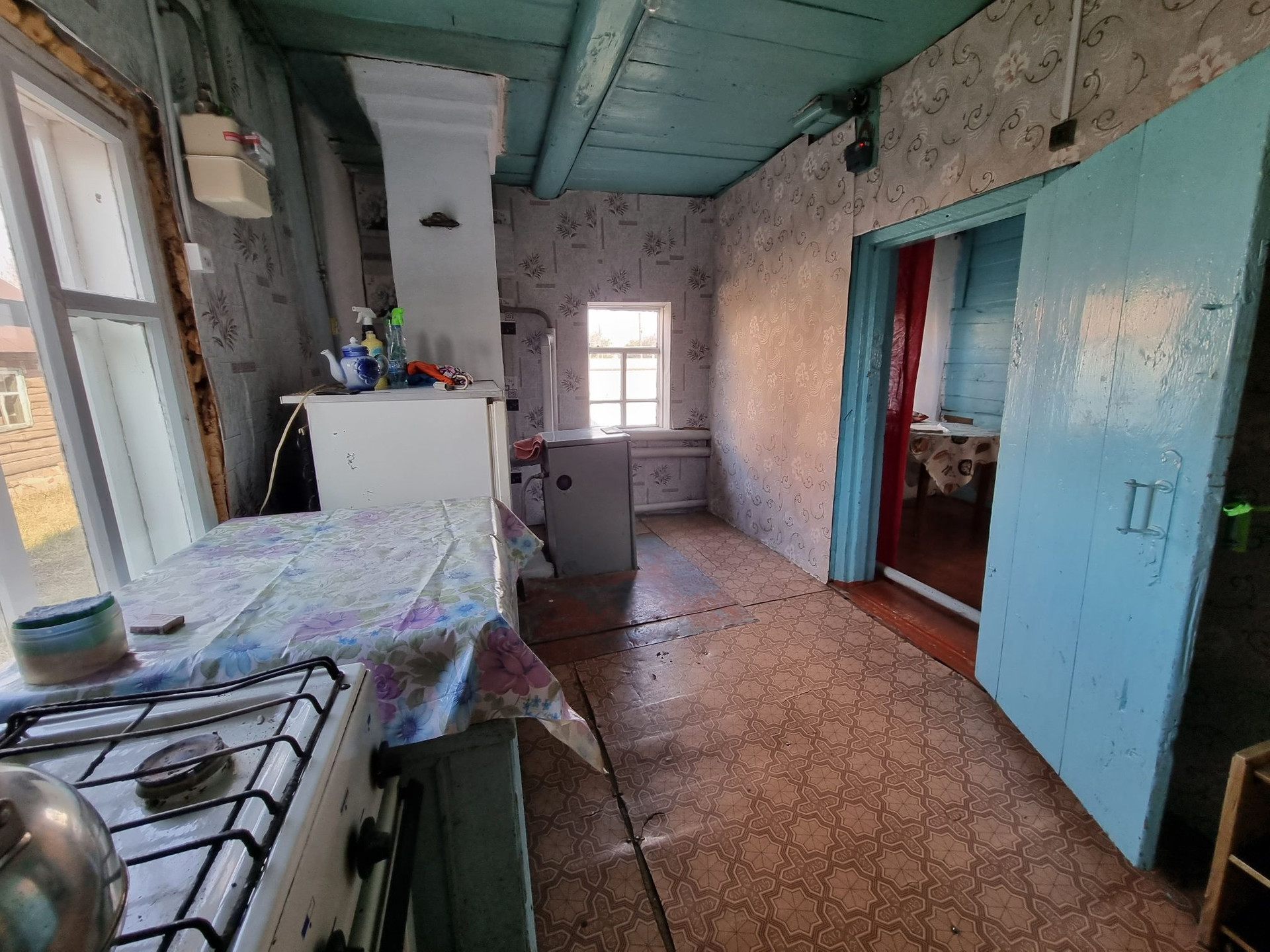 В доме 2 маленькие комнаты, зал, кухня и отдельно зона приёма пищи.