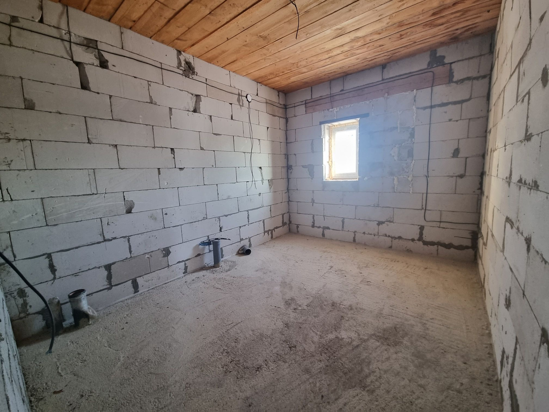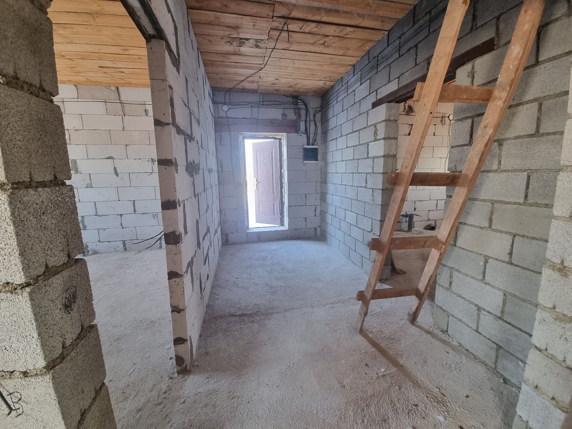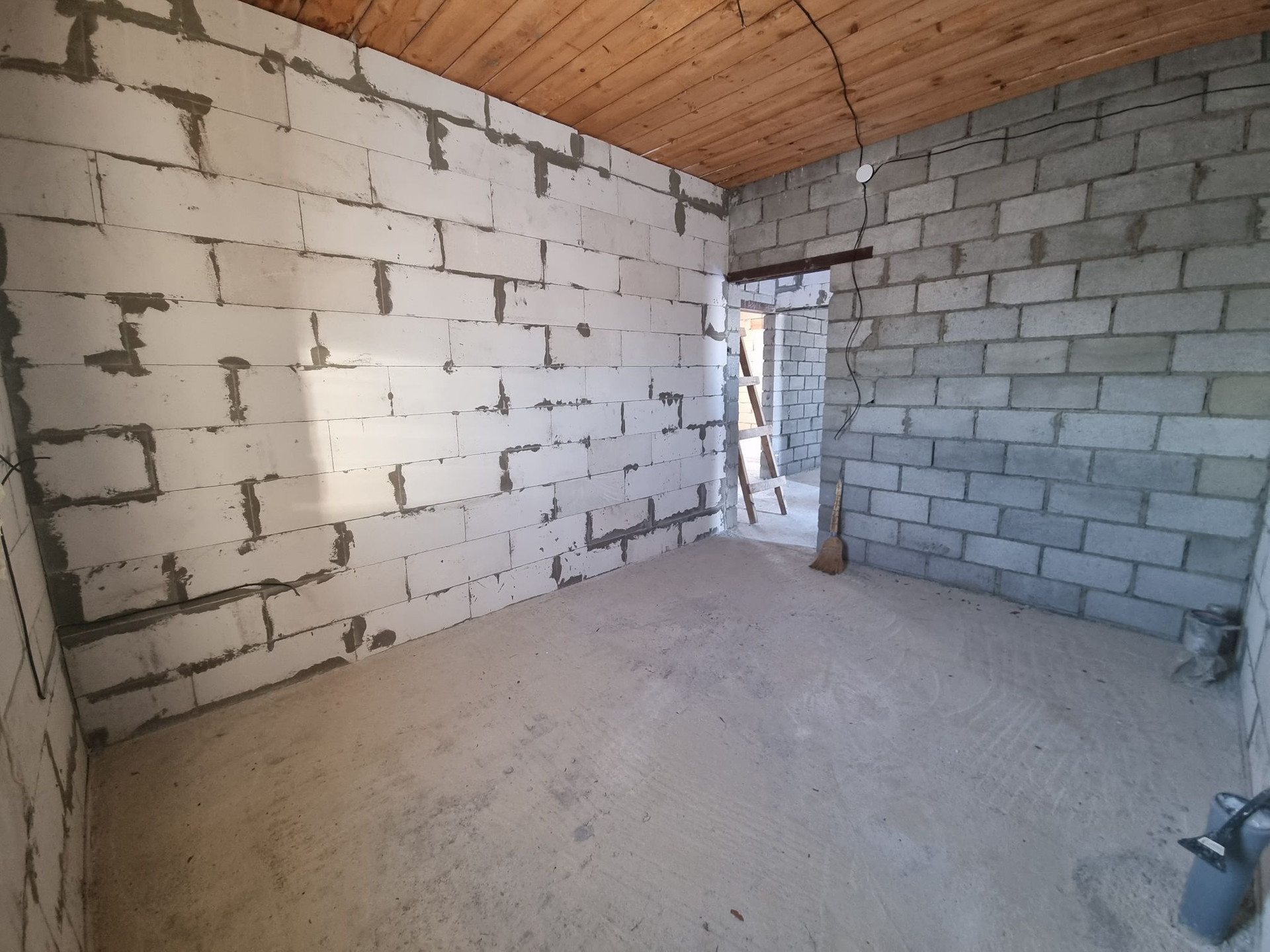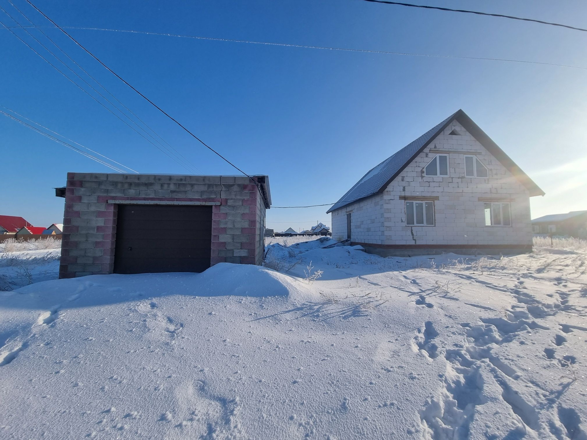 Дом под крышей, крыша металлочерепица. ‍♂️Материал стен- инсиблок, перегородки-шлакоблок, ленточный фундамент. Полы залиты, установлены пластиковые окна. Электричество на 220 и 380 проведено по дому, выгребная яма 4 метра, заведена канализация, трубы под воду. Газ и вода проходят по улице.