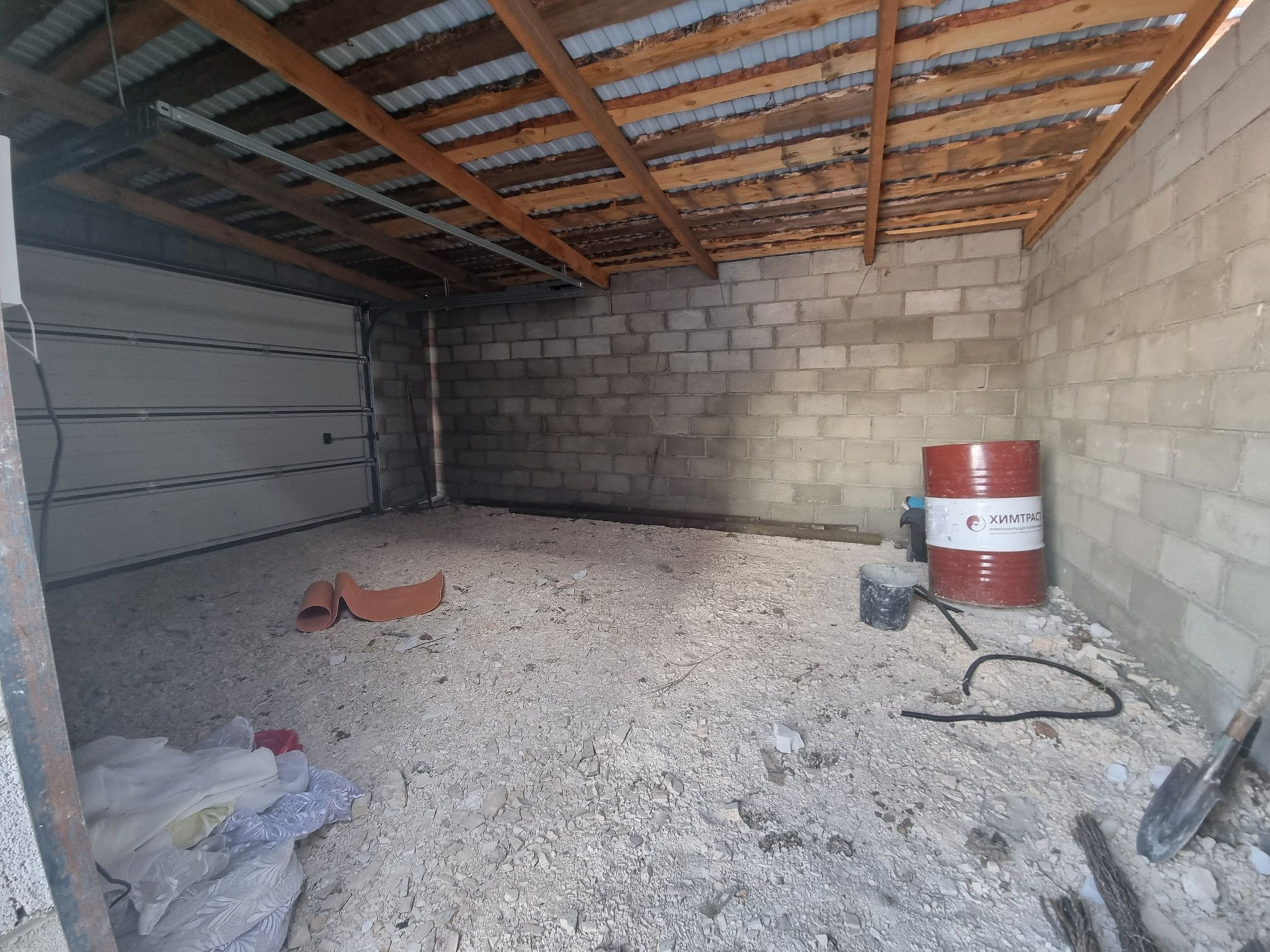 На участке имеется готовый гараж из шлакоблока с автоматическими воротами.