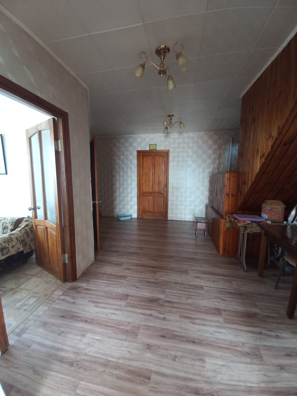 На 1 этаже большая гостиная, просторная кухня, спальня, раздельный санузел. На 2 этаже две спальни, есть возможность сделать еще комнаты.