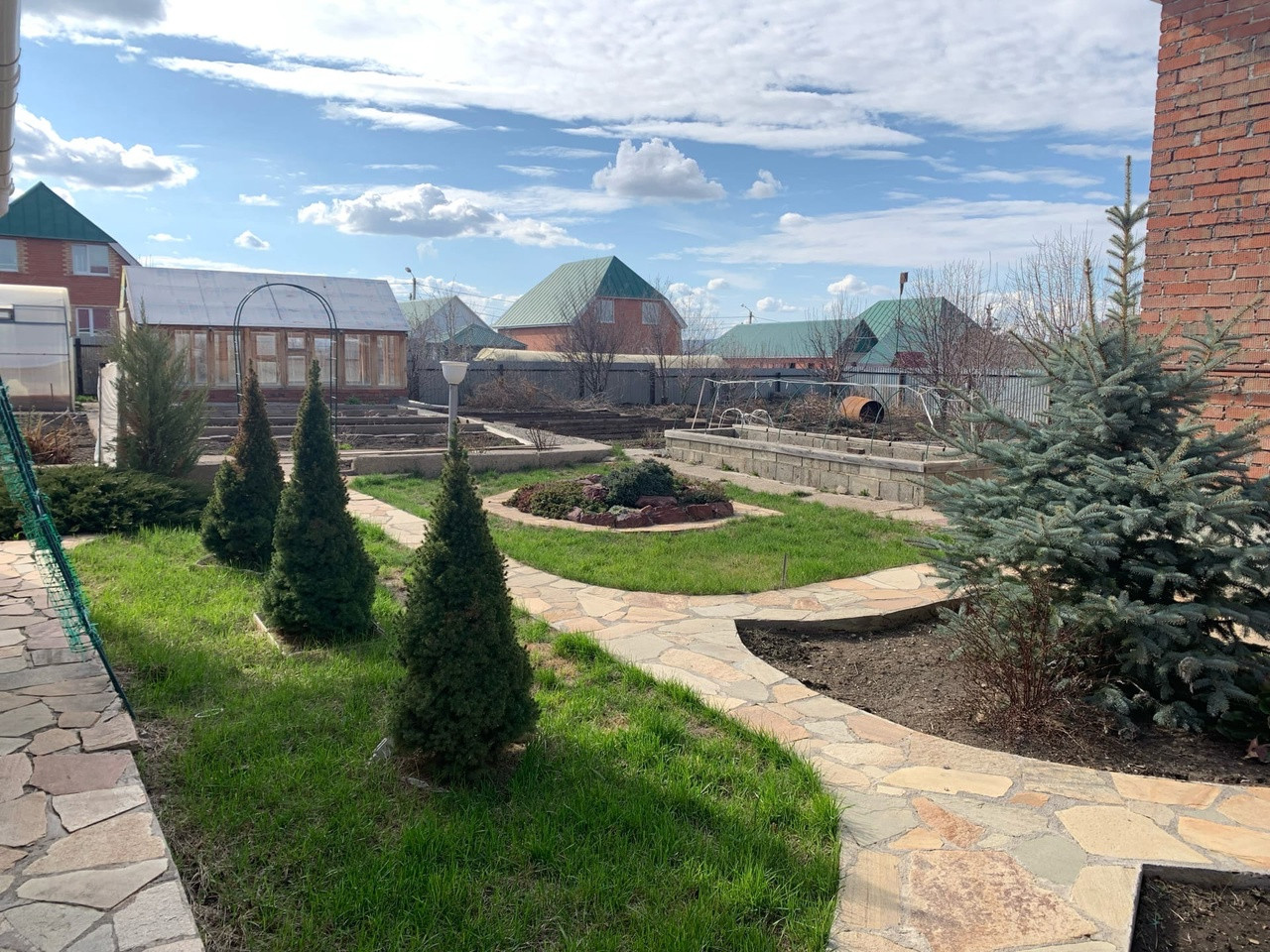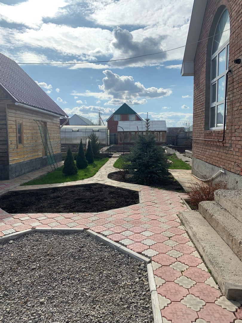 Двор участка облагорожен тротуарной плиткой.