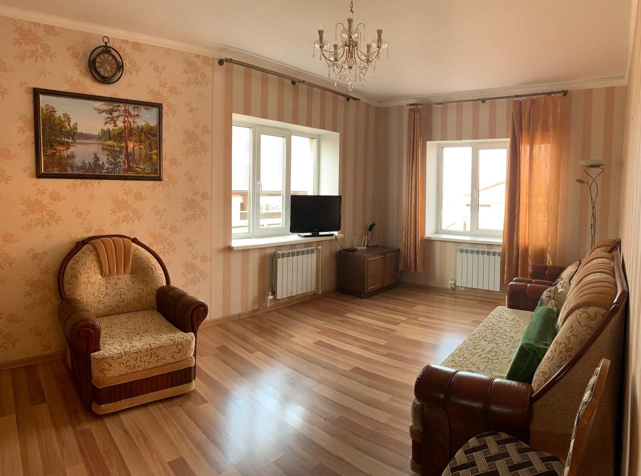 На первом этаже: 3 спальни, зал, просторная кухня, раздельный с/у в кафеле. На втором этаже: две комнаты, из одной можно сделать отличную гардеробную, вторую, использовать как зону отдыха, бильярдную...