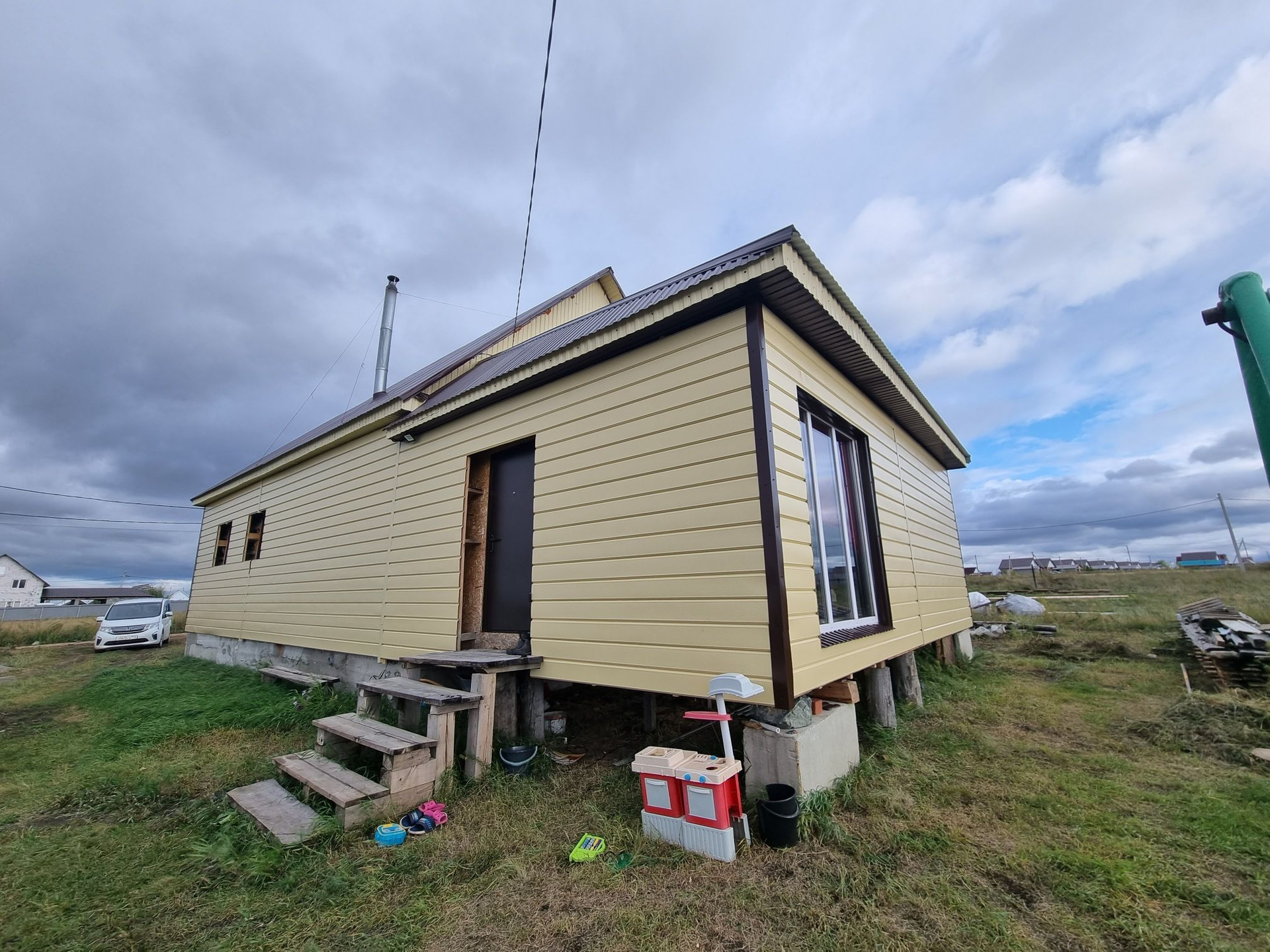 Дом 100 кв.м. 2022 года постройки. Материал стен- брус, обшит сайдингом, крыша профнастил.