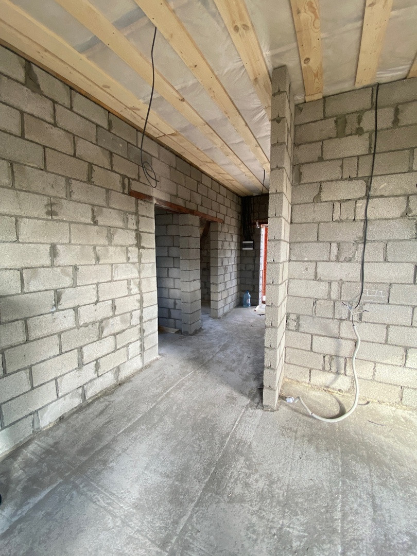 В доме: просторная кухня-гостиная с выходом на террасу, большой сан.узел, 3 спальные комнаты.Продуманы места для встроенной мебели.Натяжные потолки, стены и полы выровнены под маяк.