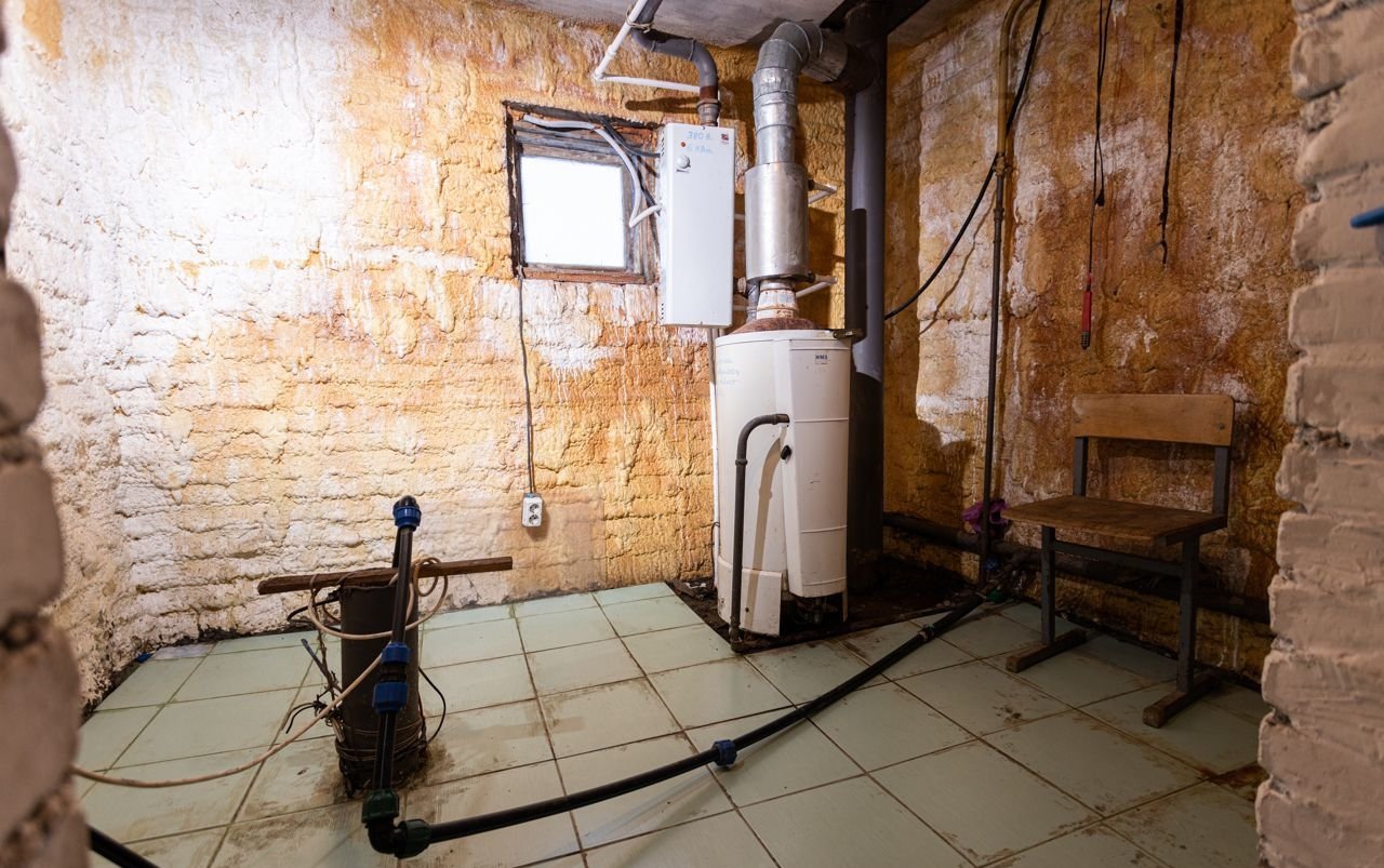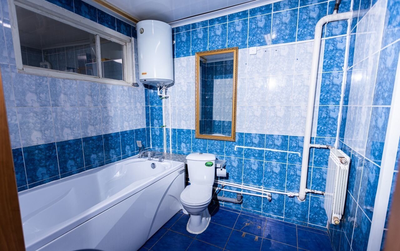 - Кольцовое отопление закрытого типа, труба 60мм, радиаторы установлены во всех комнатах, чугунные и алюминиевые.