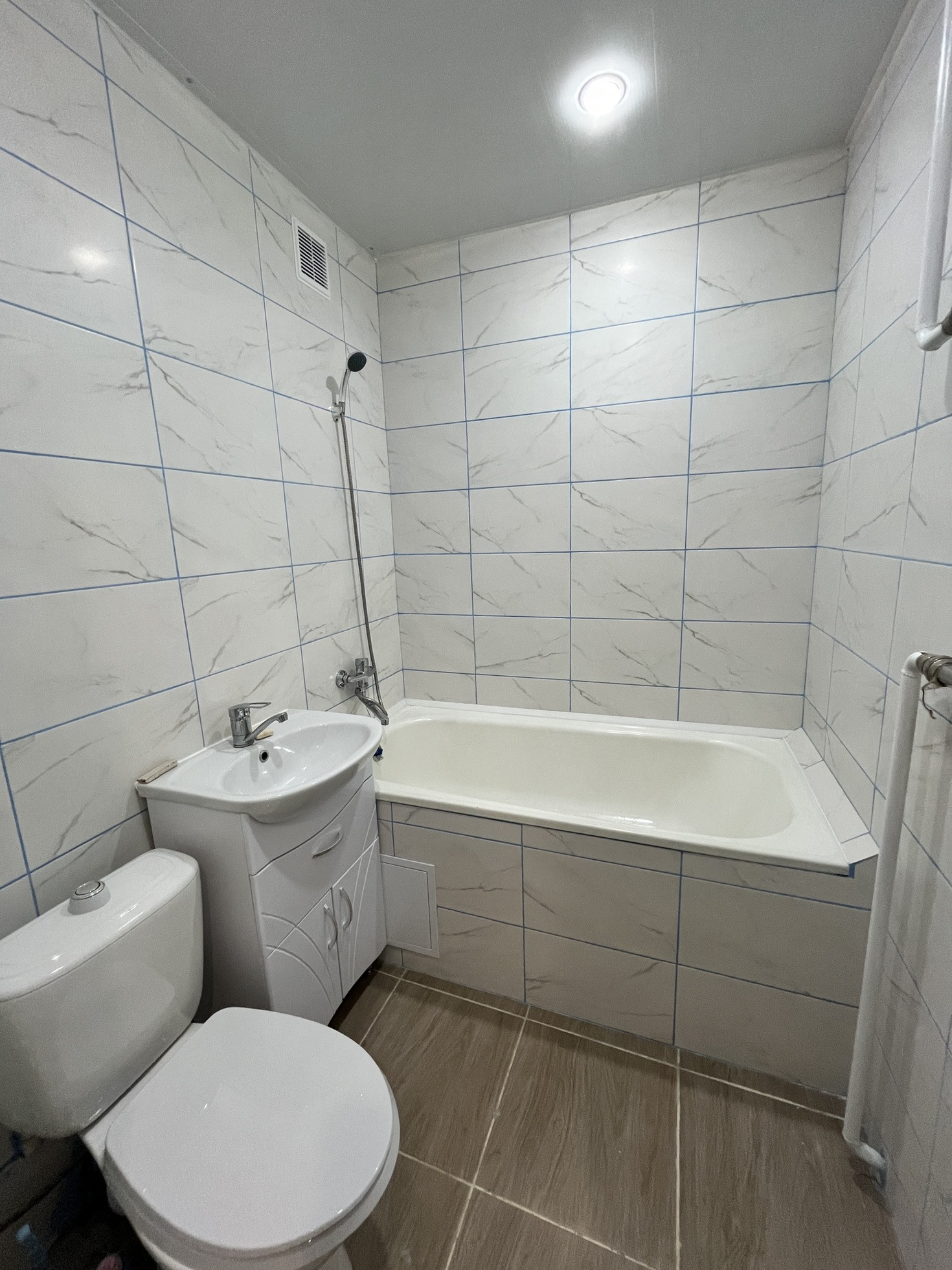 ✅Сан. узел совмещен в кафеле. Пластиковые трубы и водомеры установлены.