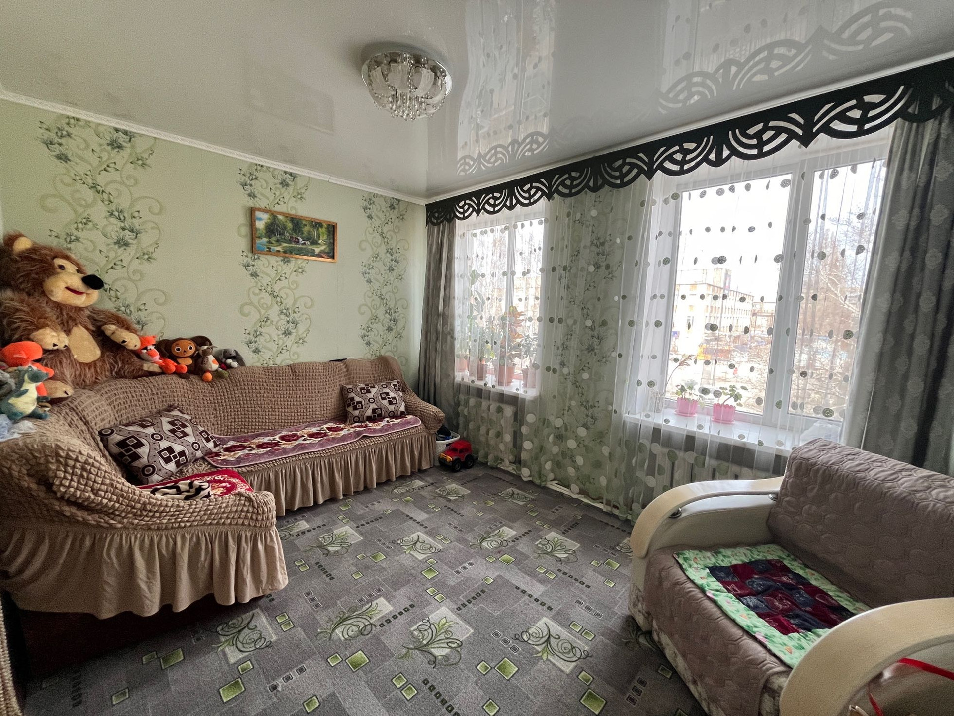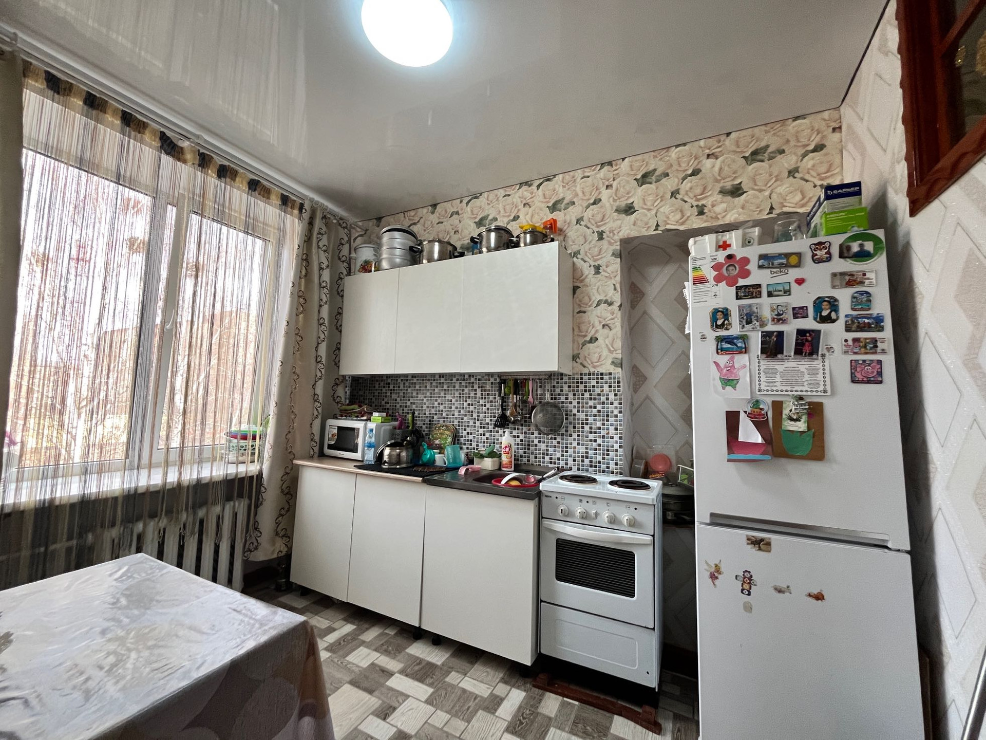 Пластиковые окна, на полу линолеум, квартира без балкона. Квартира ухоженная, чистая, теплая.
